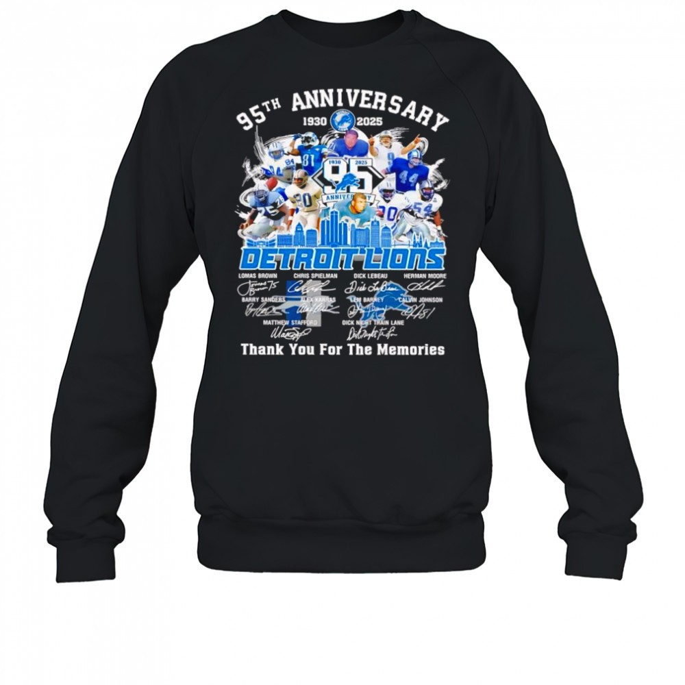 Detroit Lions football 95th anniversary 1930 2025 Thank You For The Memories signatures shirt