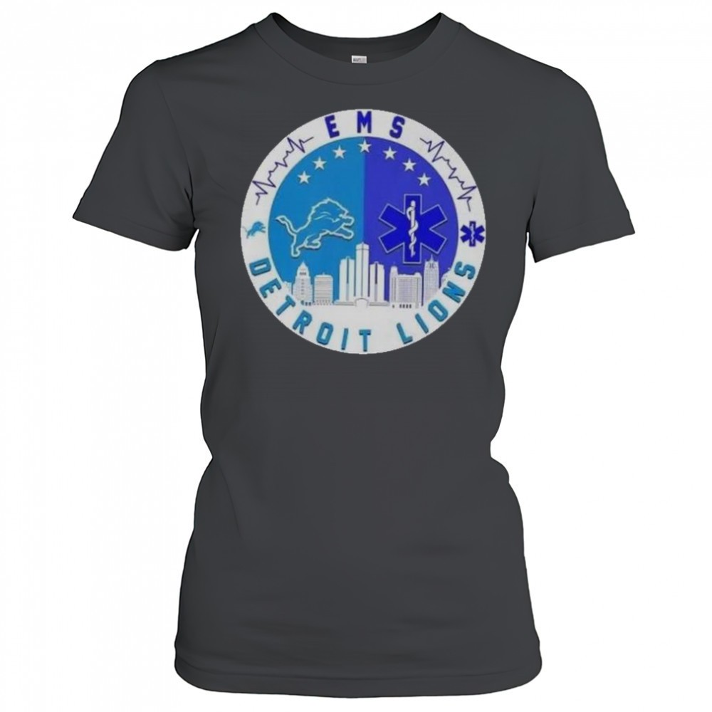 Detroit Lions Heartbeat EMS City Skyline T-Shirt