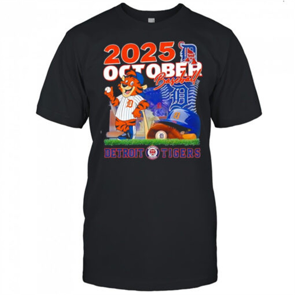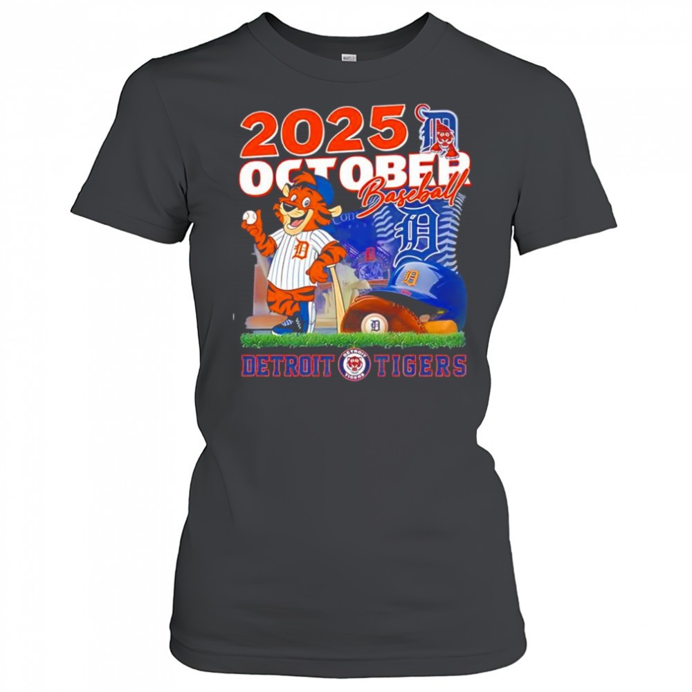 Detroit Tigers 2025 October baseball team helmet mascot logo graphic shirt