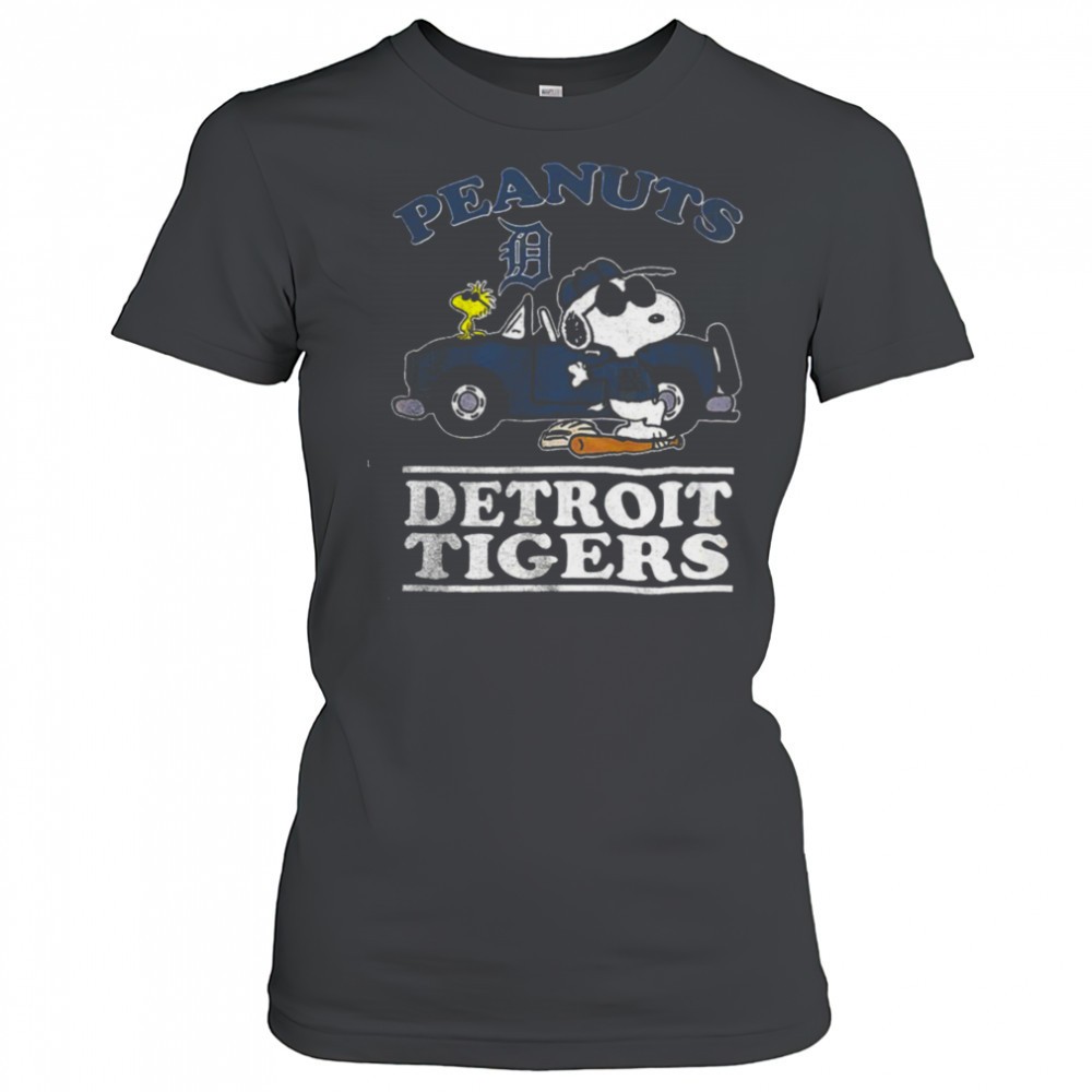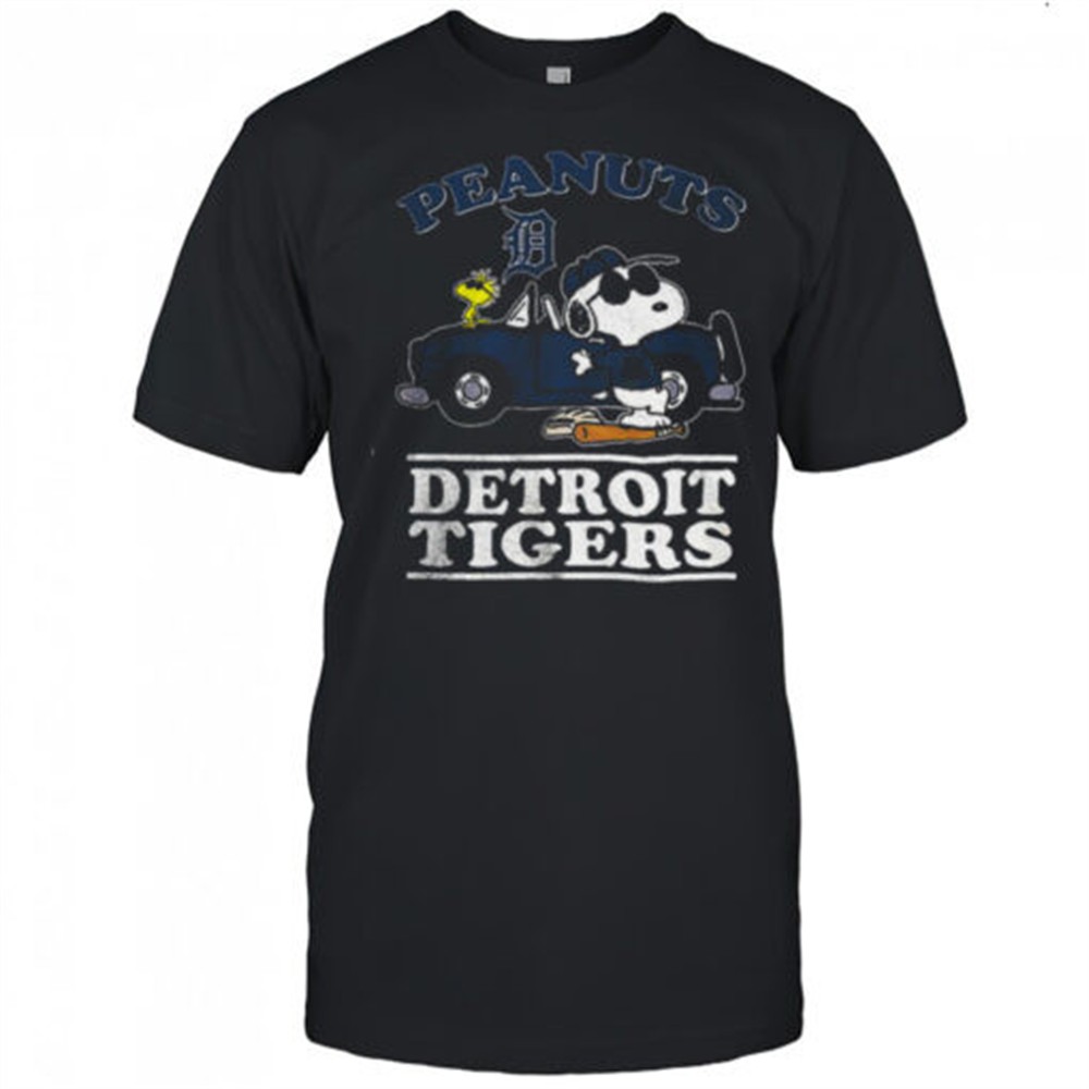 Detroit Tigers Peanuts Snoopy driving car shirt