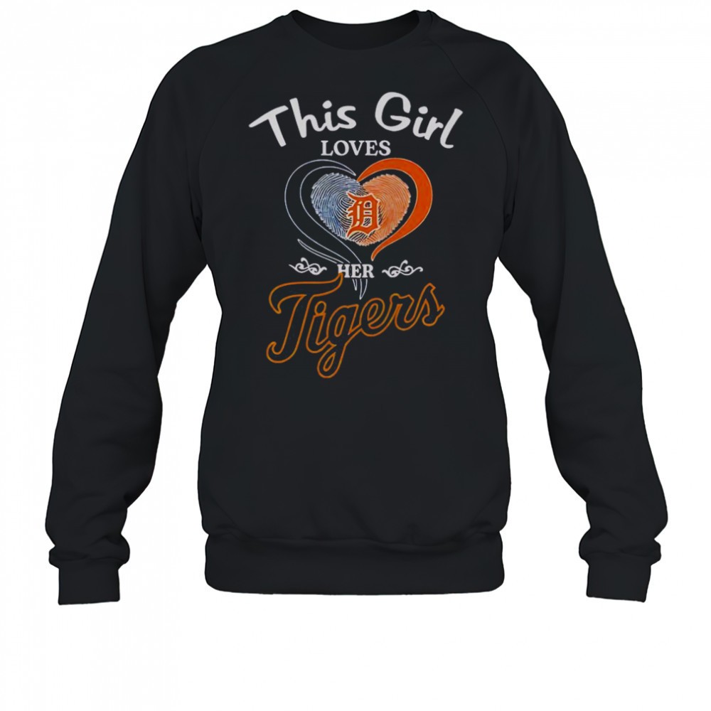 Detroit Tigers This Girl Loves Her Heart Fingerprint T-Shirt