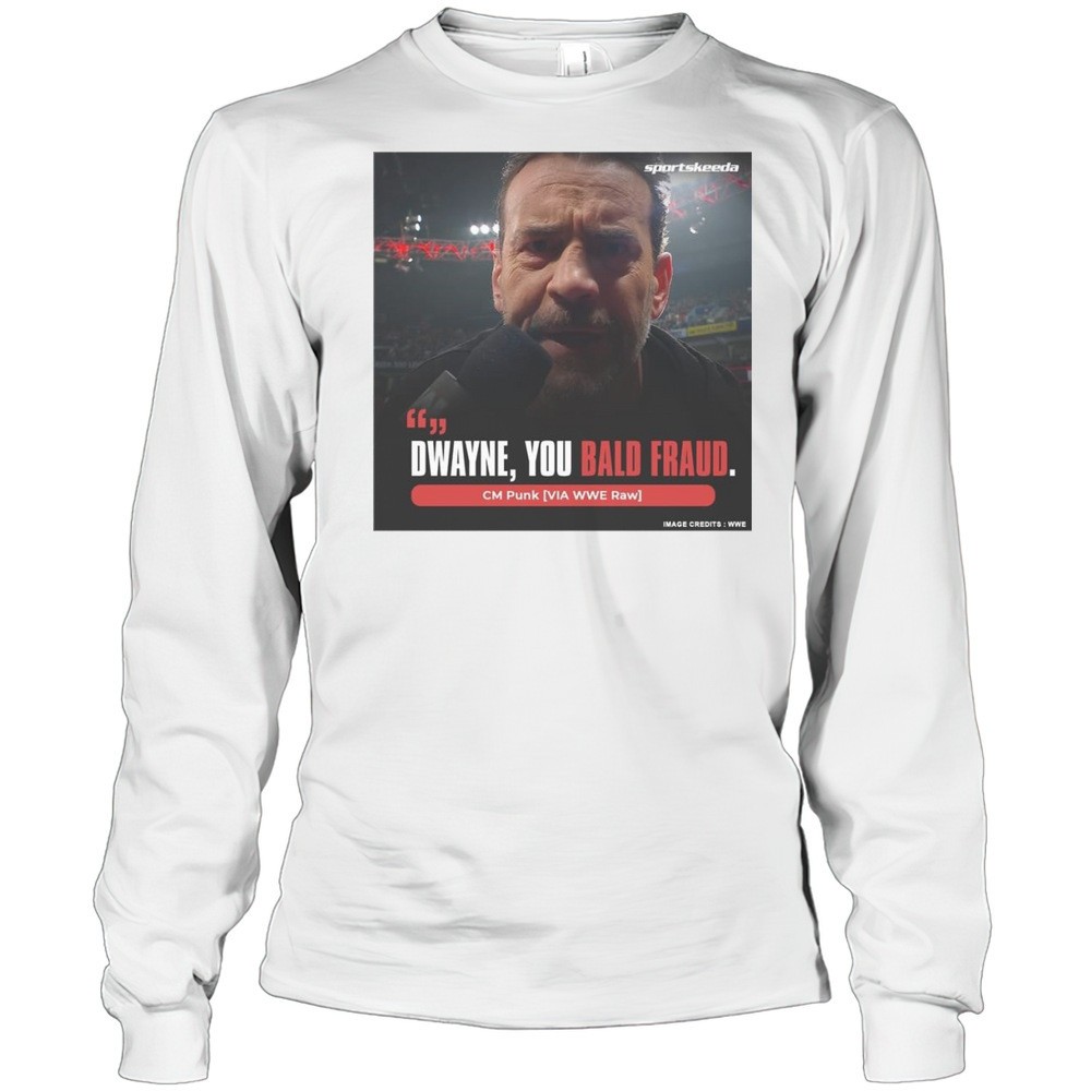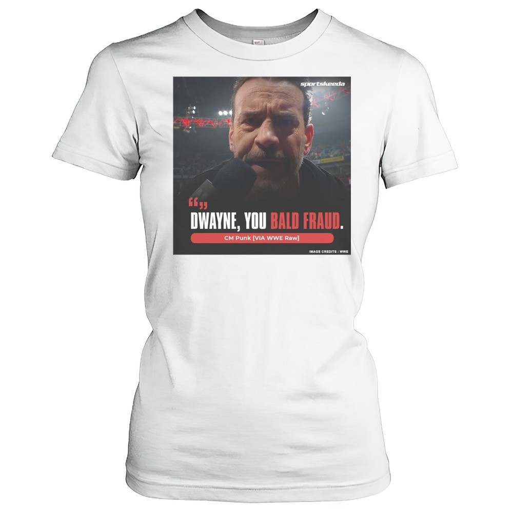 Dwayne You Bald Fraud Cm Punk Via WWE Raw WrestleMania 41 T-shirt