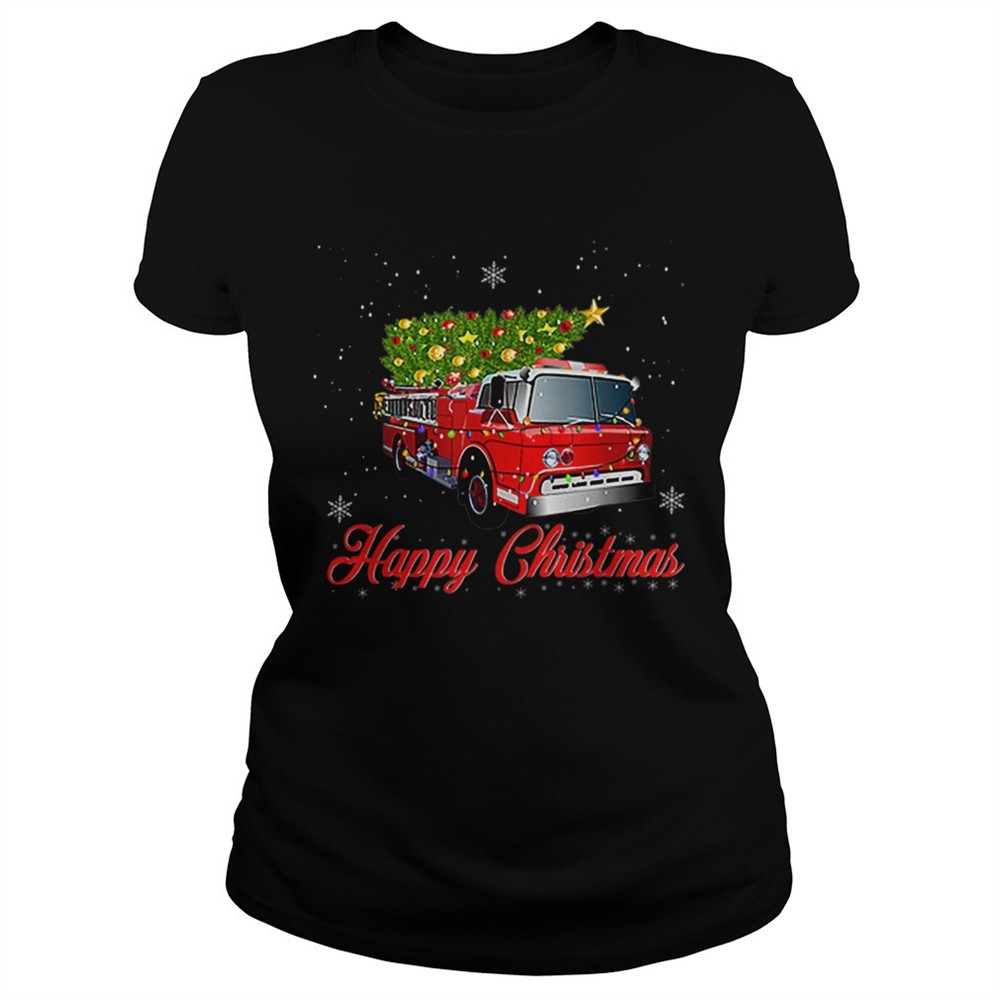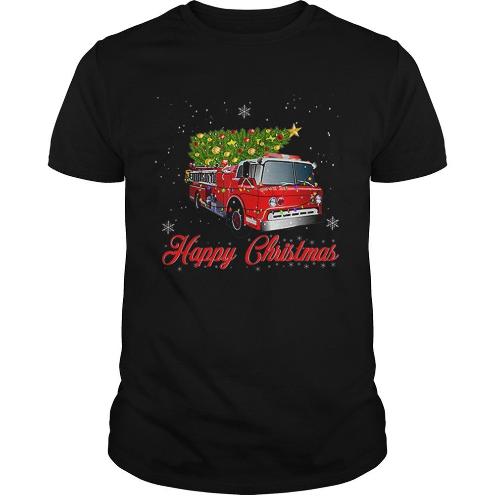 Firefighter Christmas Tee Tree On Truck Fire Xmas shirt