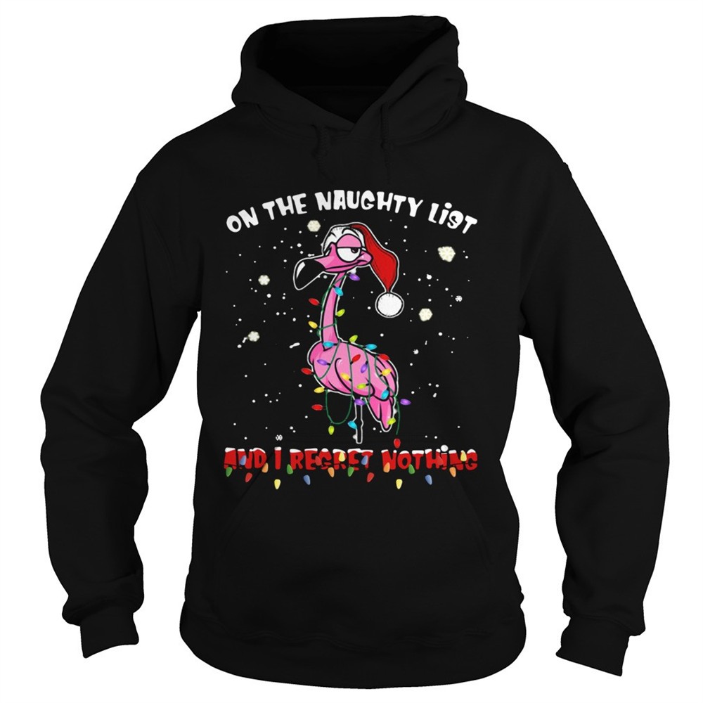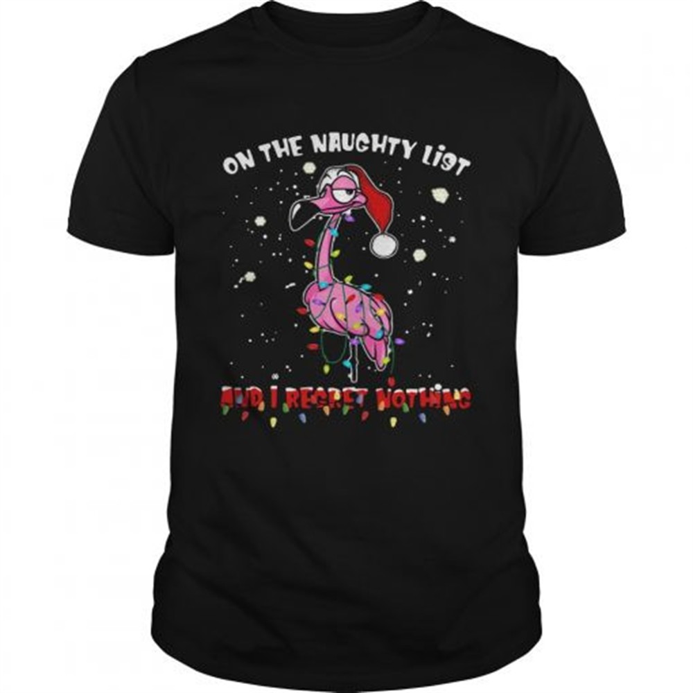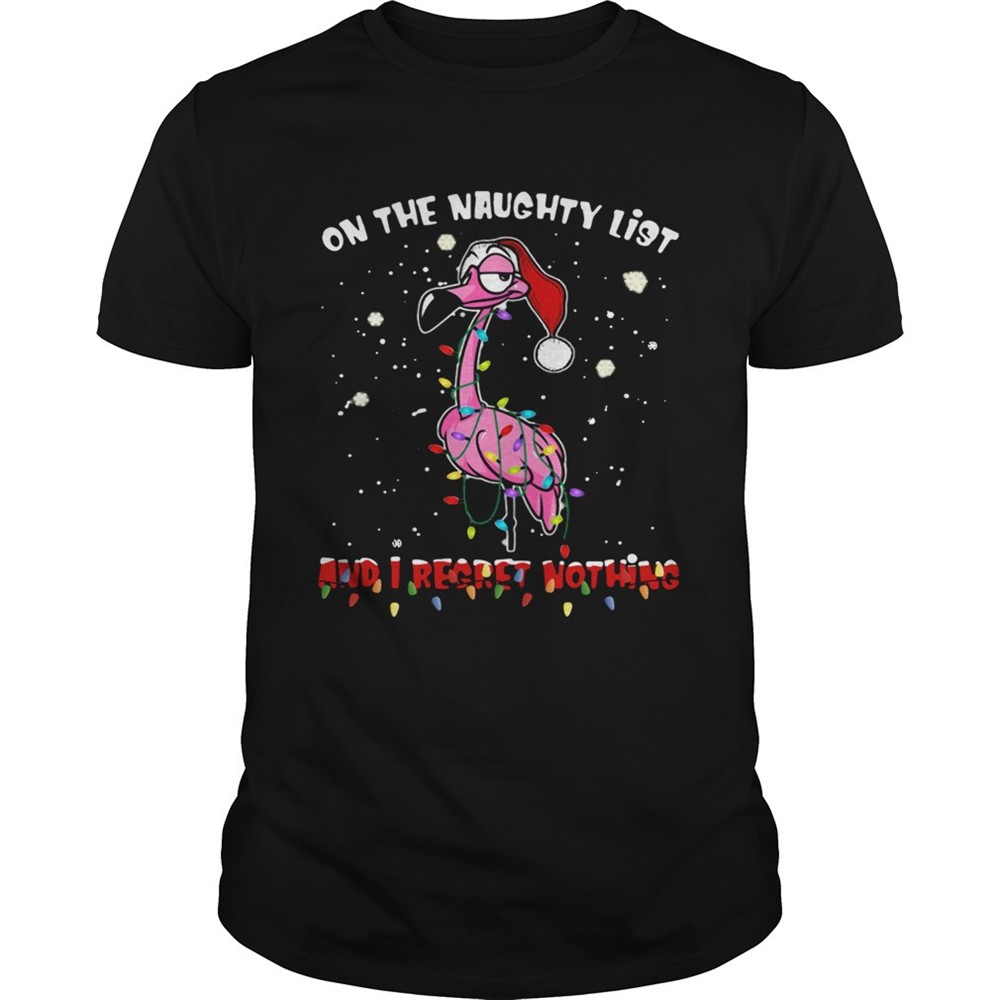 Flamingo On the naughty list and I regret nothing Christmas shirt