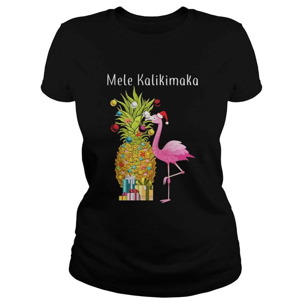 Flamingo peneapple Christmas tree Mele Kalikimaka shirt