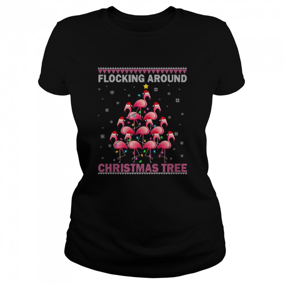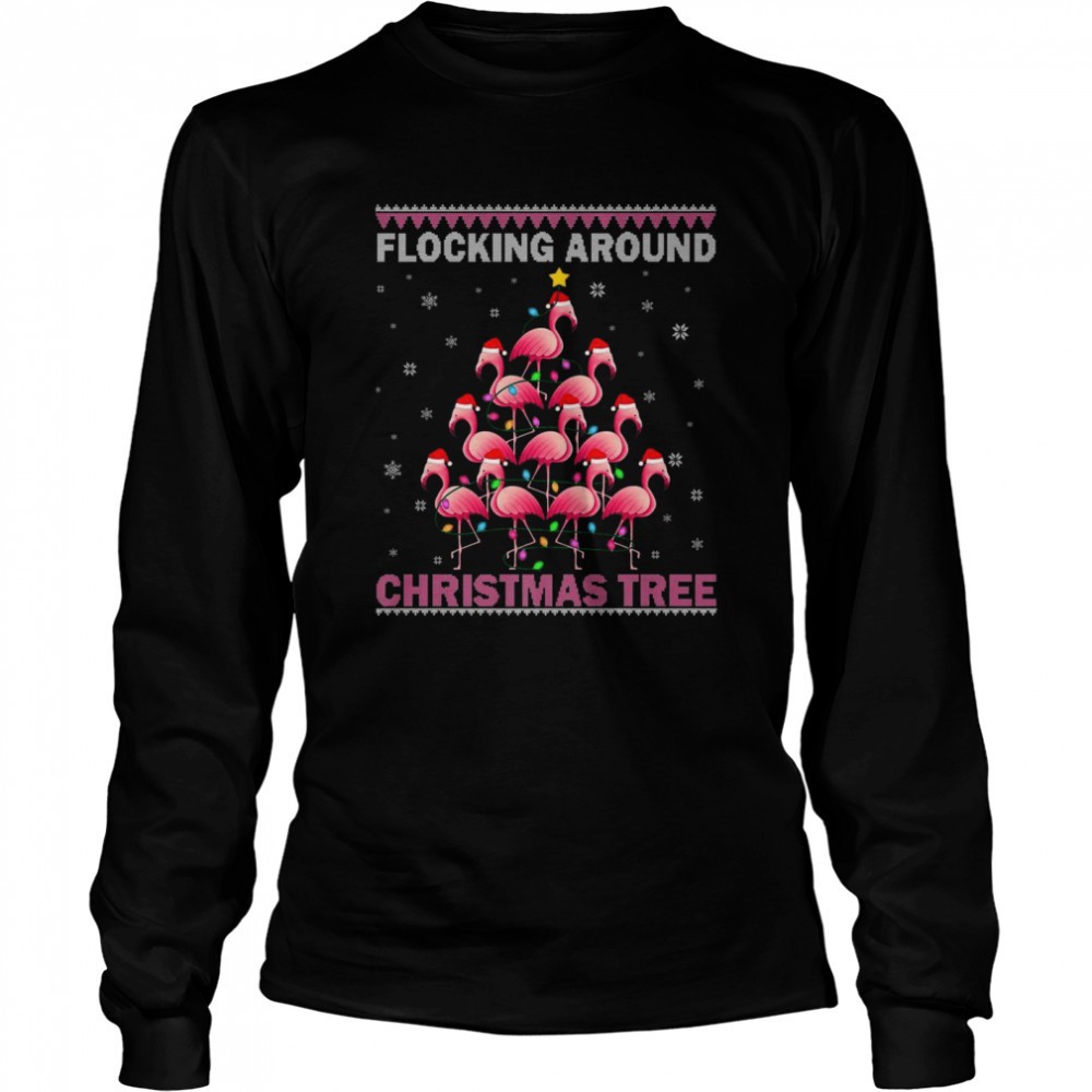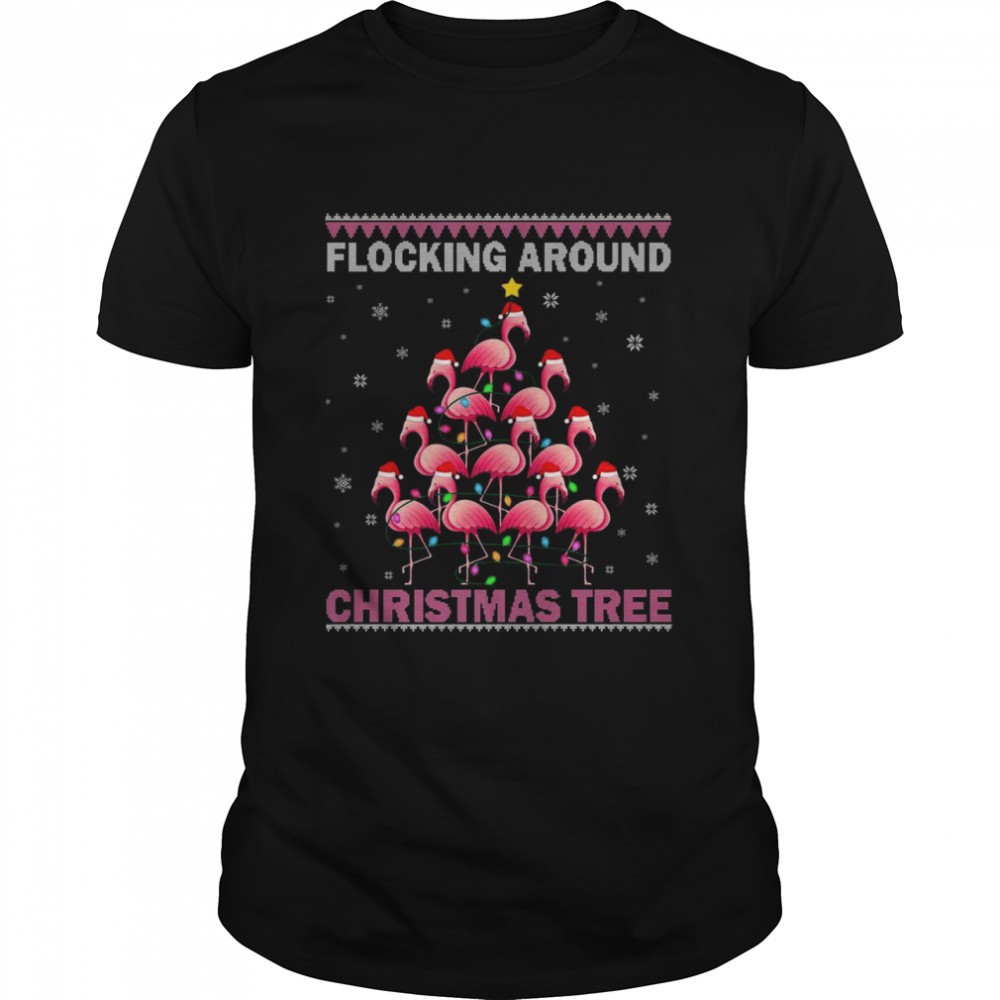 Flocking Around The Christmas Tree Flamingo Ugly Christmas Shirt