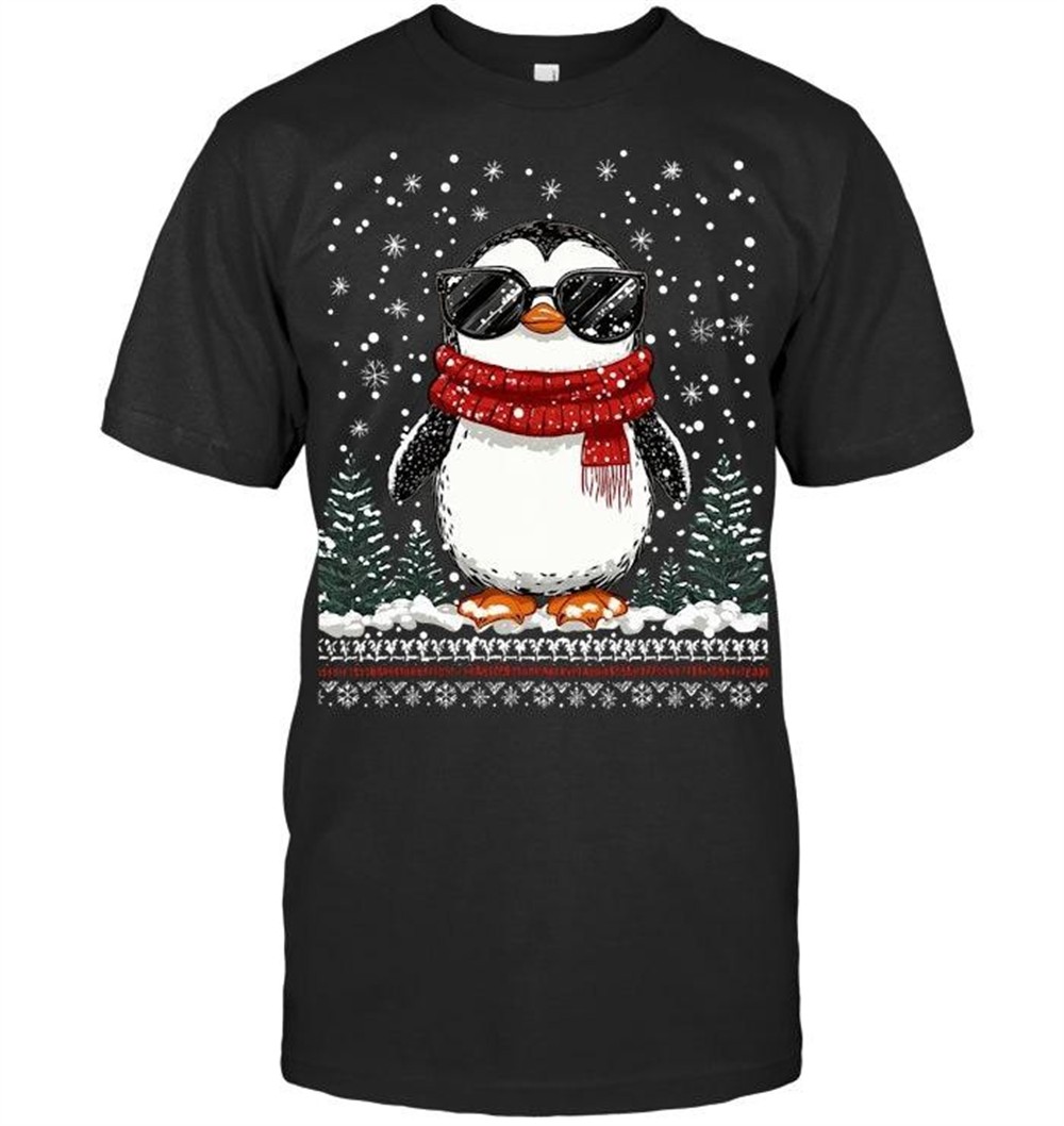 Funny Christmas Penguin With Sunglasses Ugly Christmas T Shirt