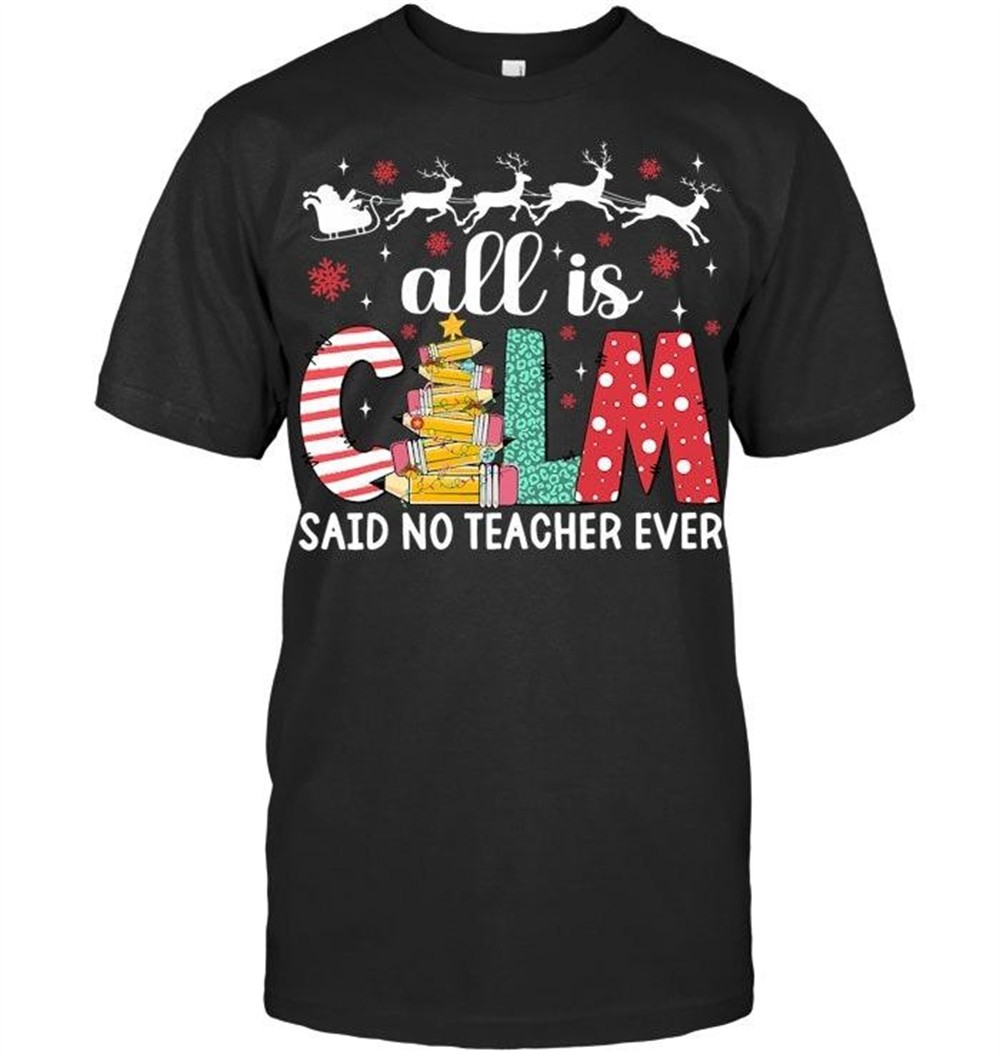Funny Teacher All Calm Said No Teacher Christmas Pencil Tree T Shirt