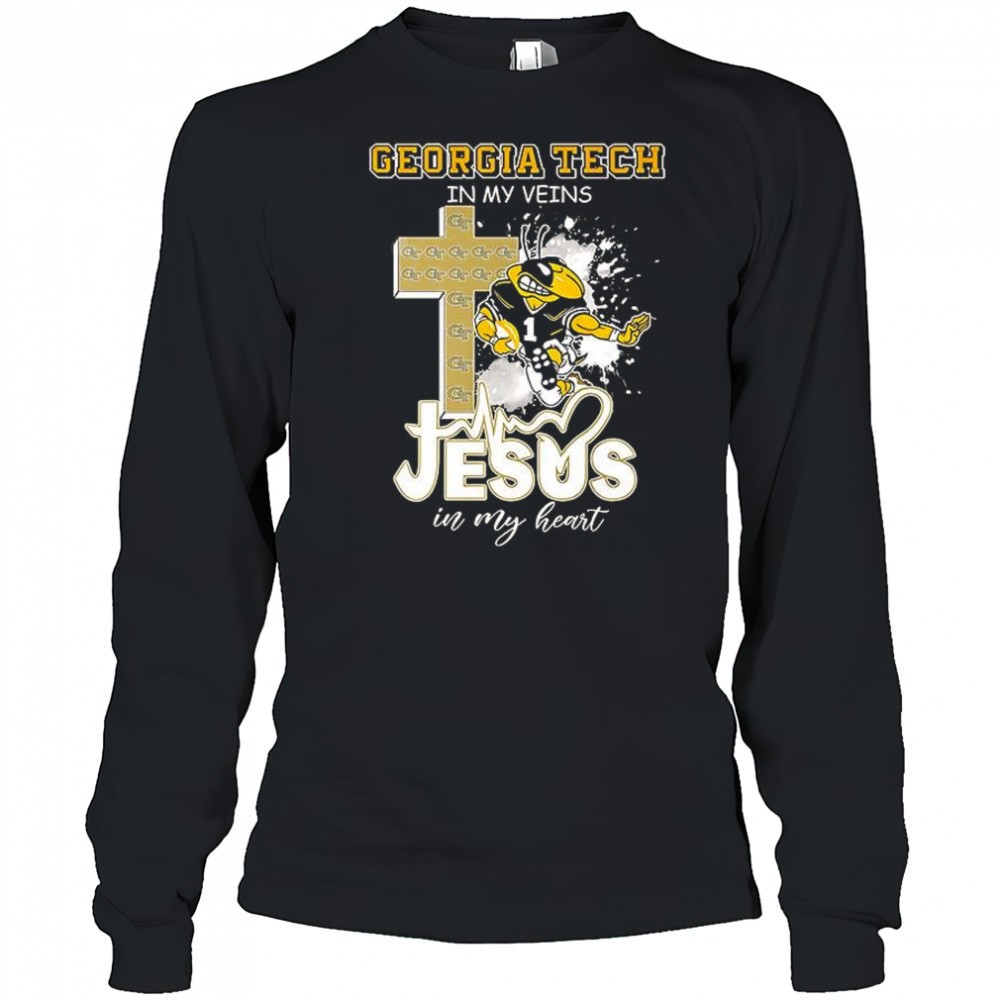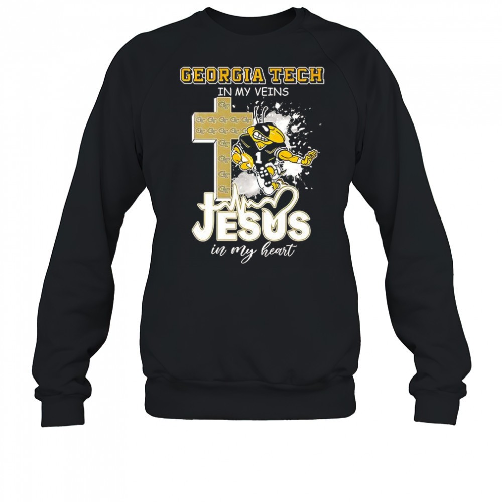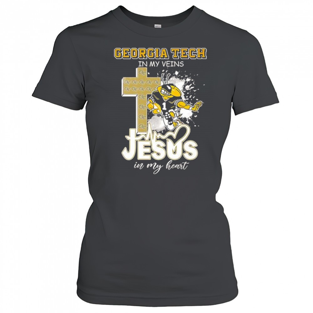 Georgia Tech in my veins Jesus in my heart mascot shirt