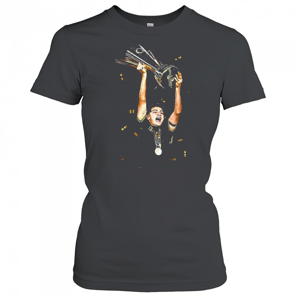Gilberto Mora holding Trophy Concacaf Gold Cup Mexico 2025 Champions shirt