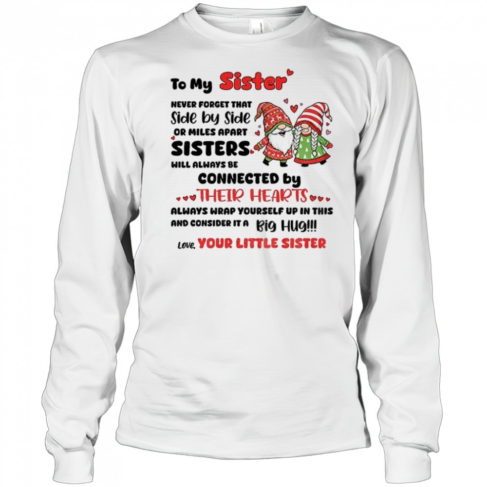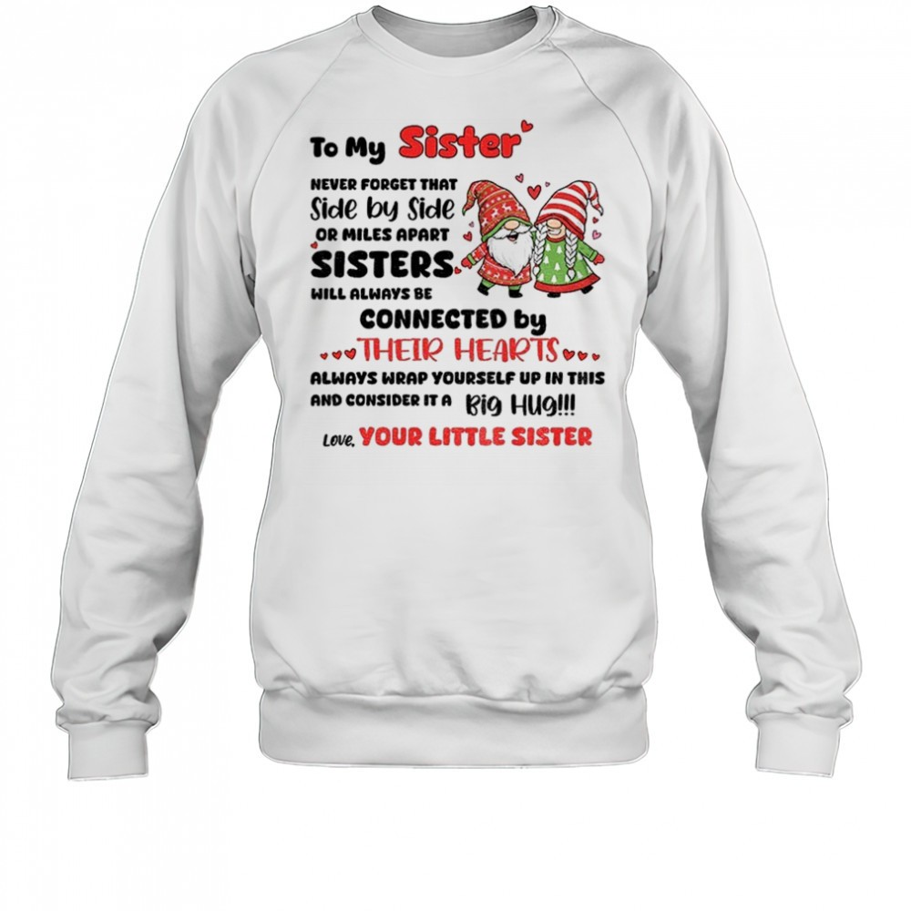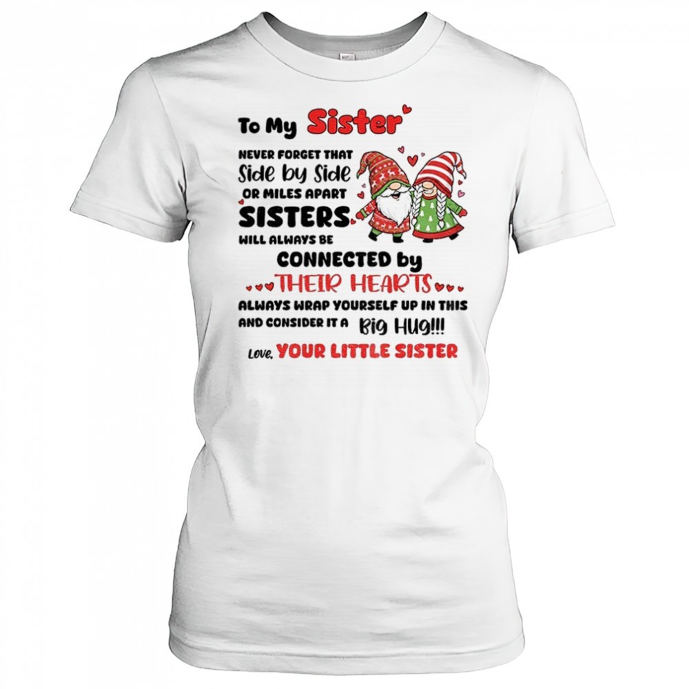 Gnome Xmas to my sister never forget that side by side or miles apart sisters will always Merry Christmas shirt