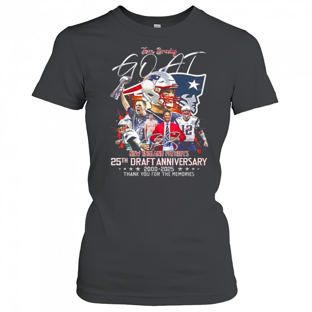 Goat Tom Brady New England Patriots 25th draft anniversary 2000 2025 thank you for the memories signature shirt