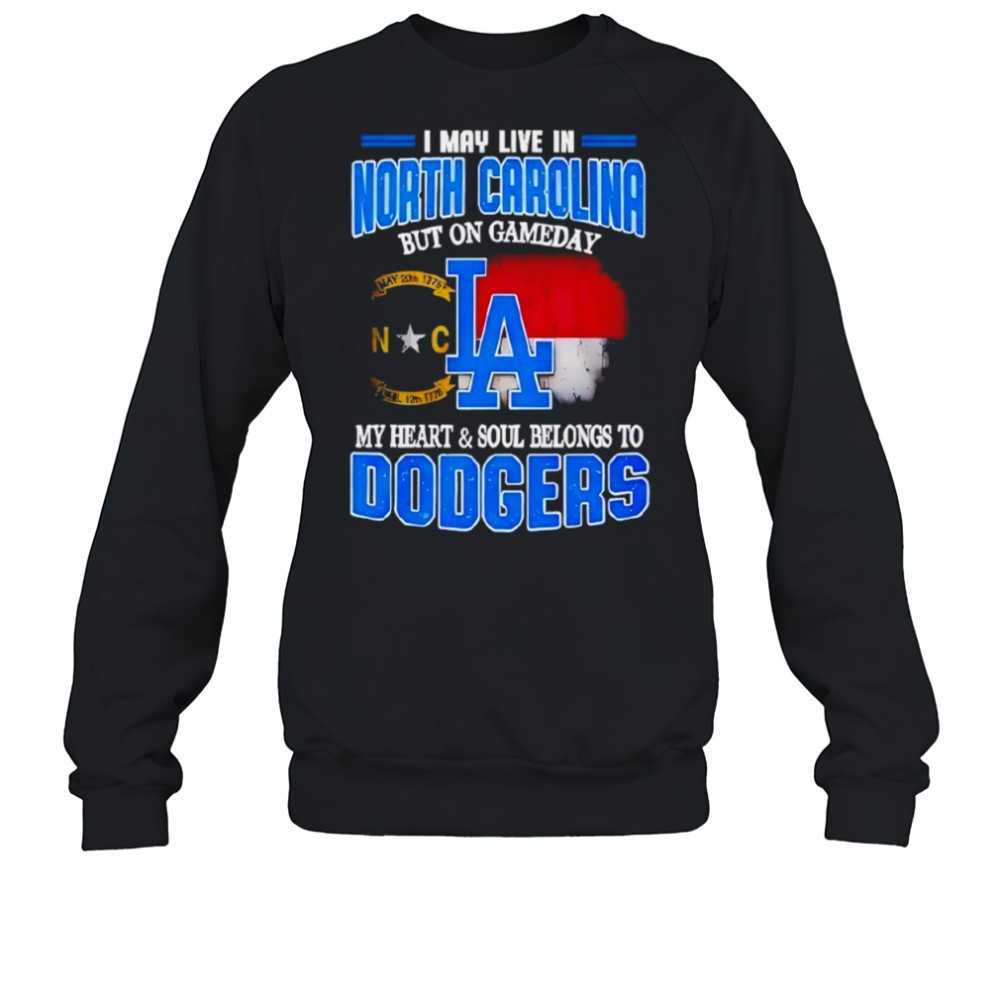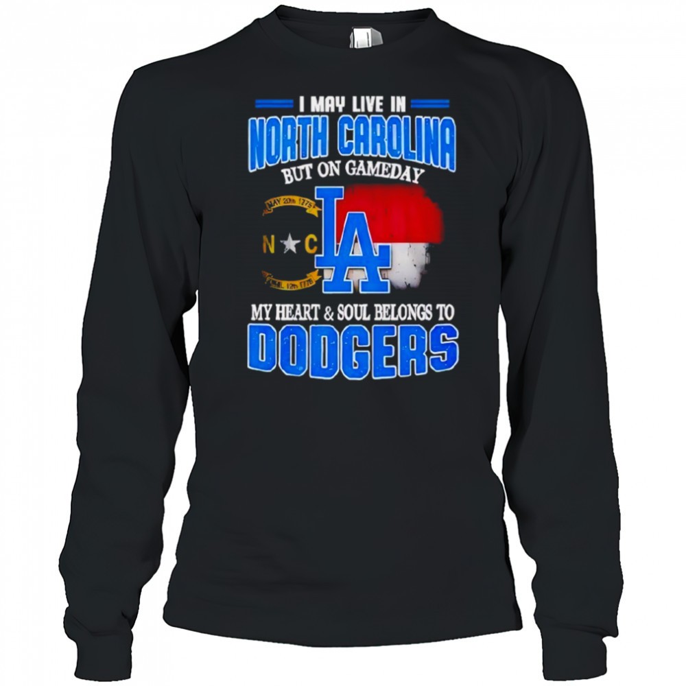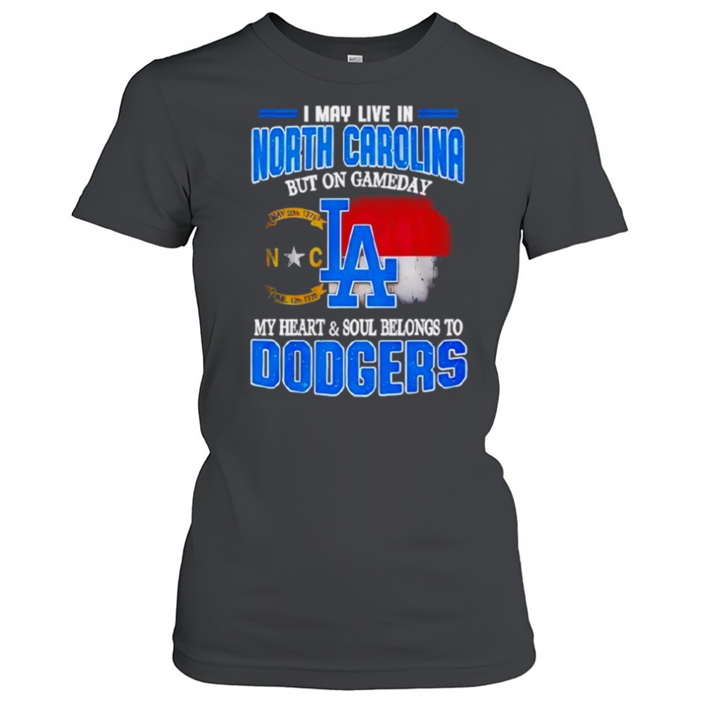 Good I May Live In North Carolina But On Gameday My Heart And Soul Belongs To Dodgers 2025 Shirt