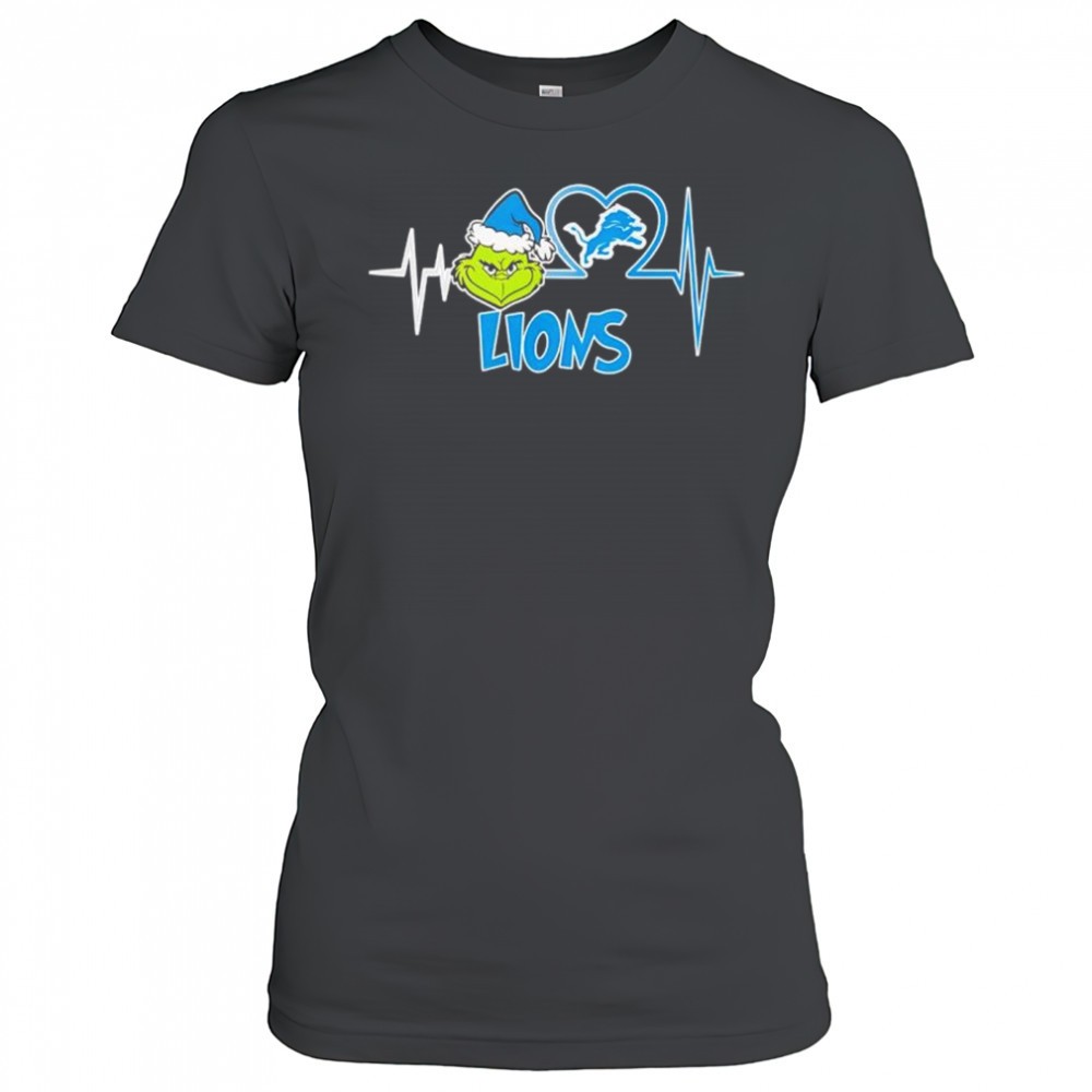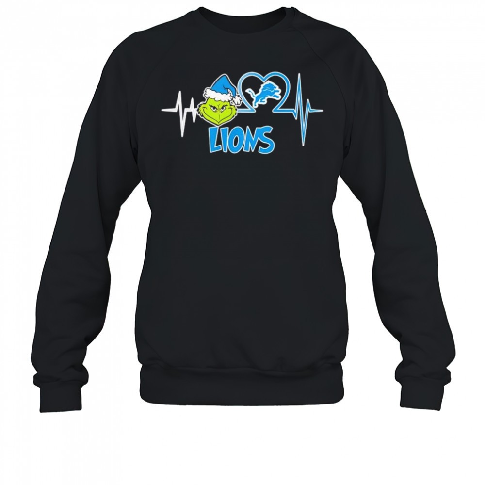 Grinch and Detroit Lions heartbeat line shirt