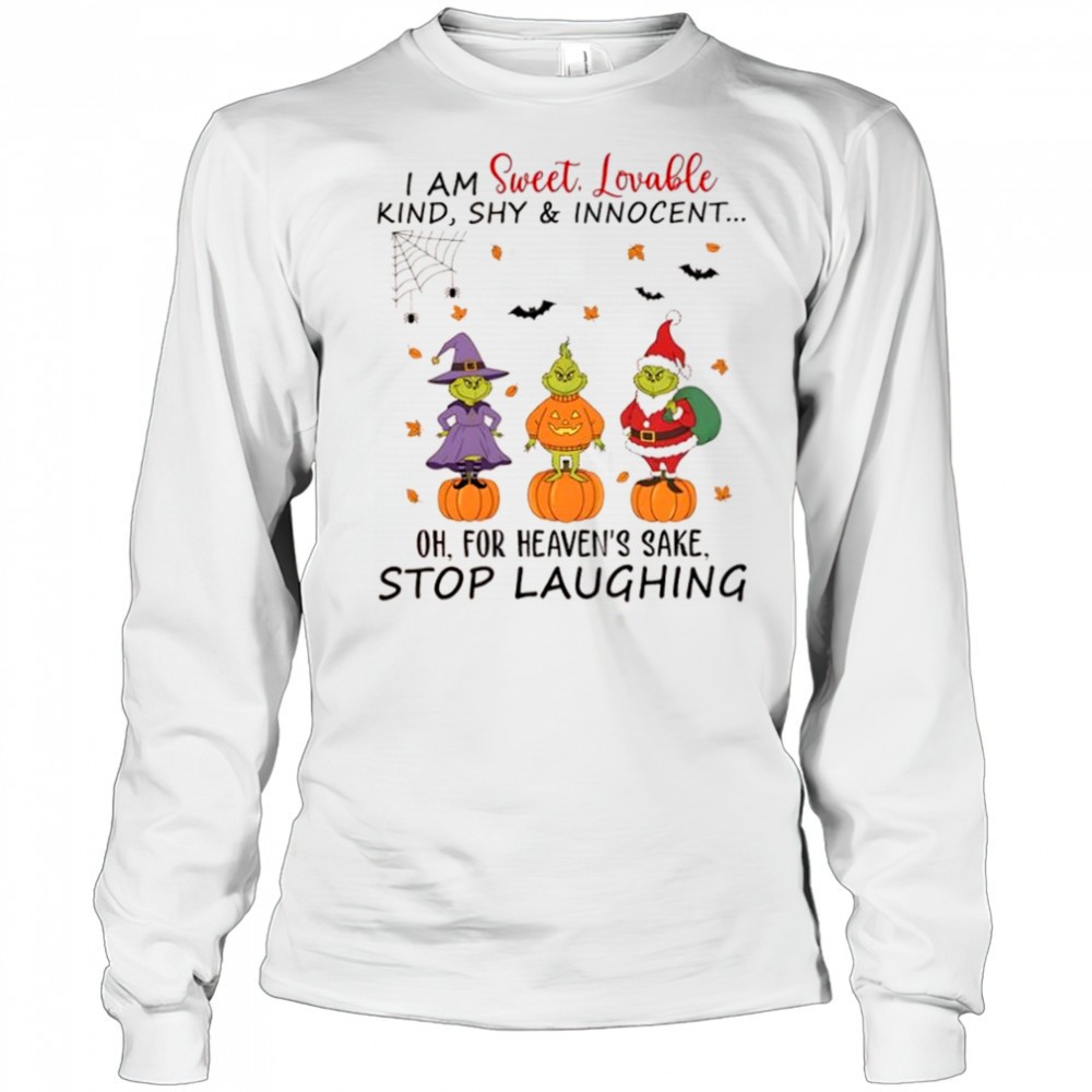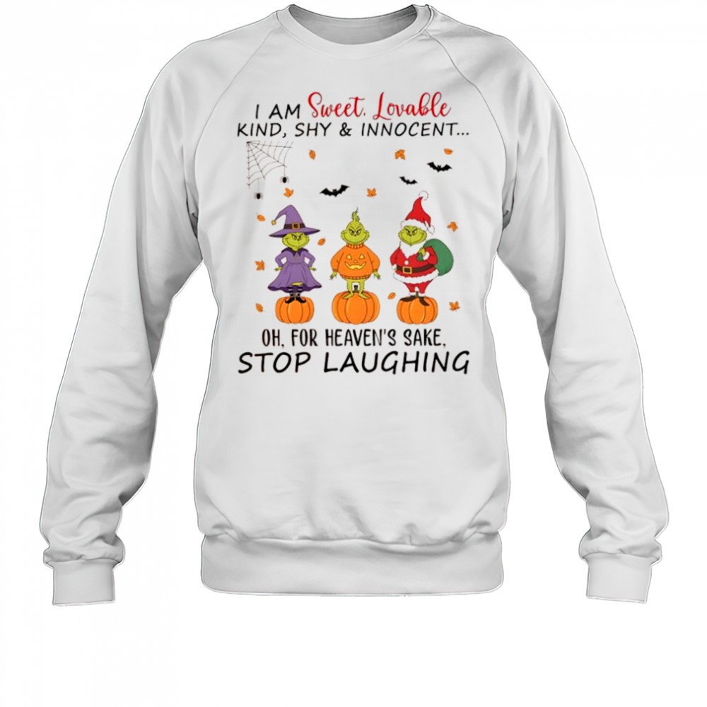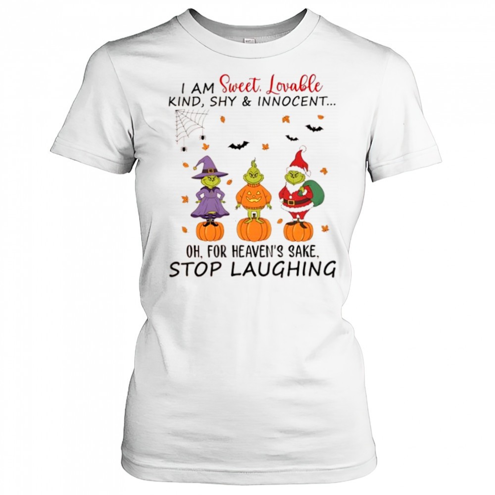 Grinch Christmas I am sweet lovable kind shy & innocent Oh for heavens sake stop laughing shirt