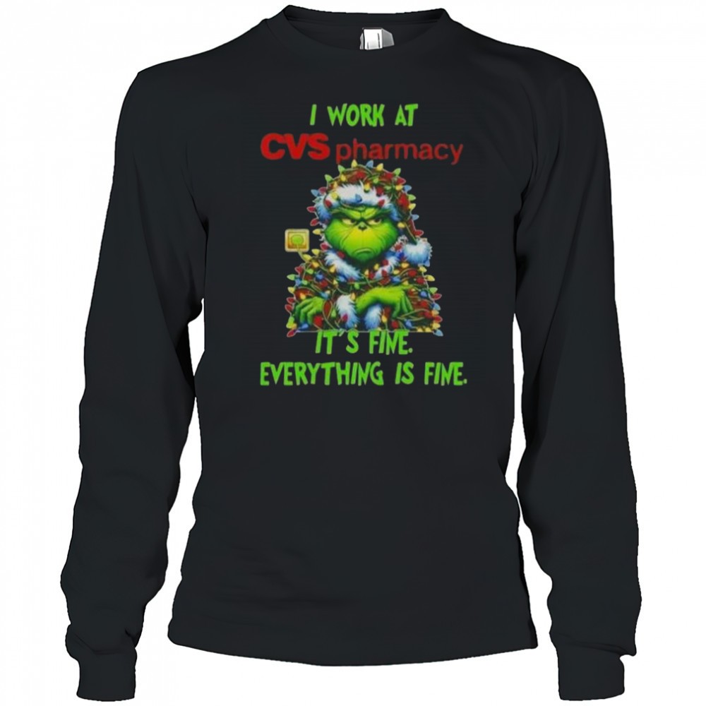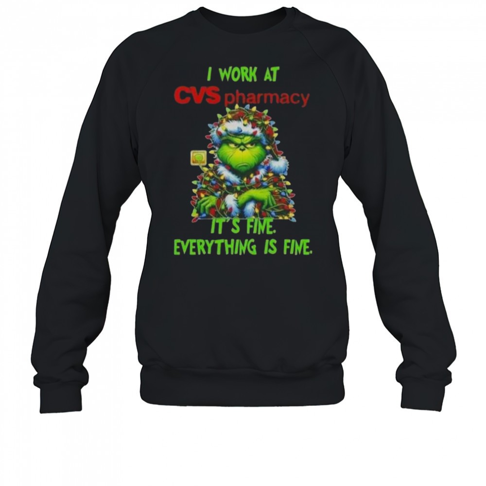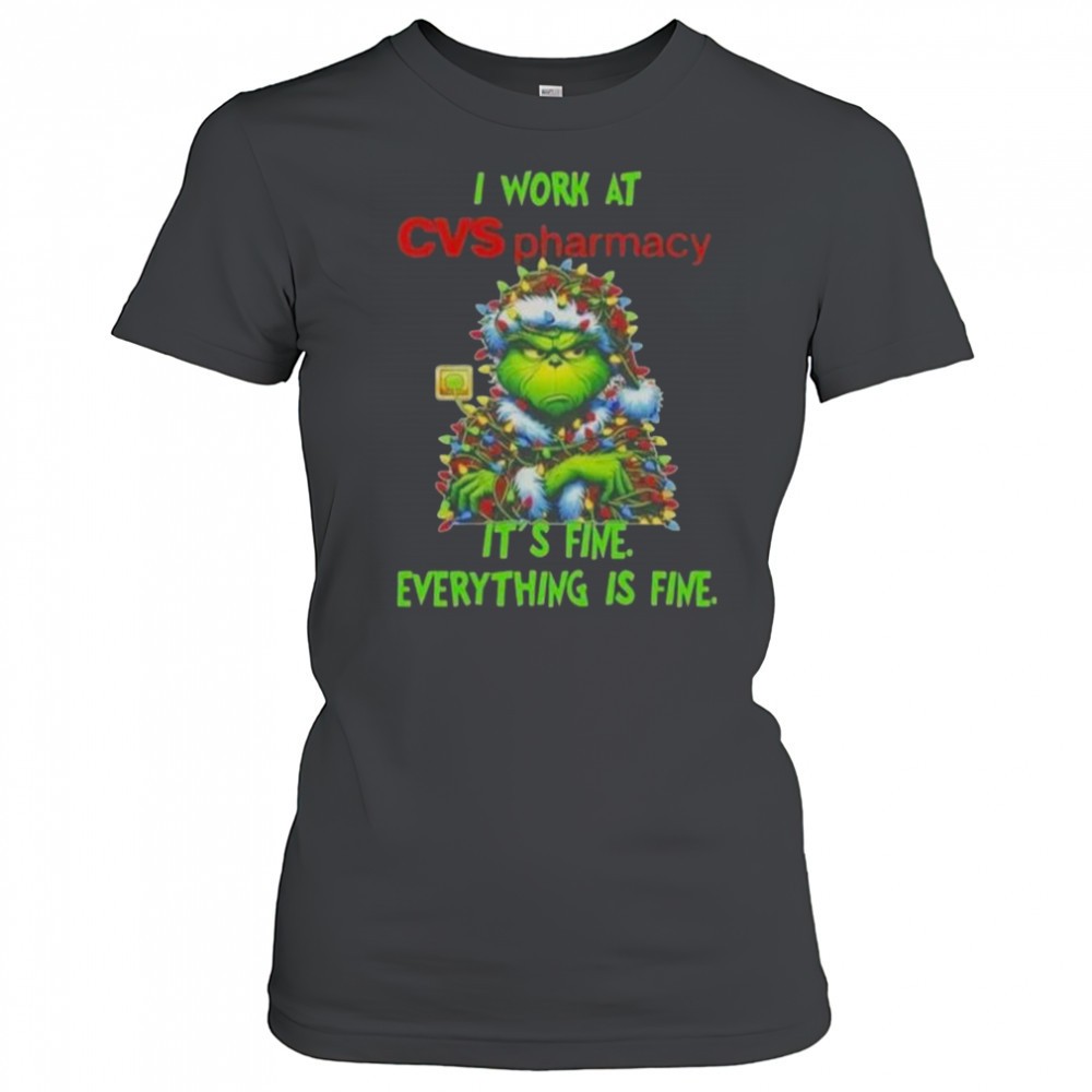 Grinch Christmas Tree X CVS Pharmacy I Work At Its Fine Everything Is Fine T-Shirt