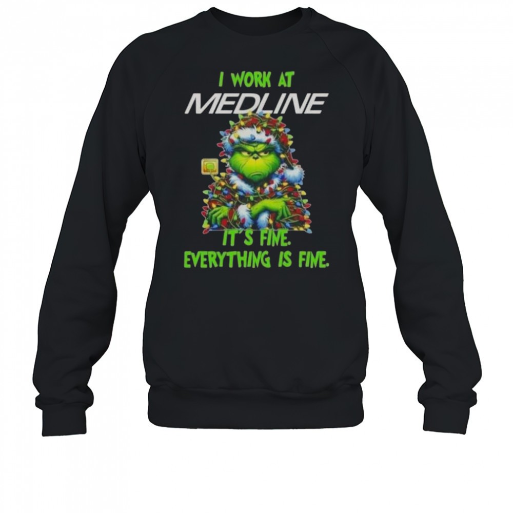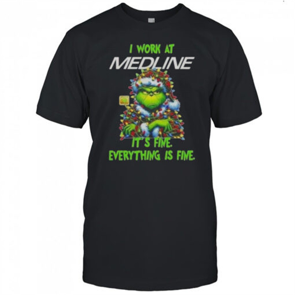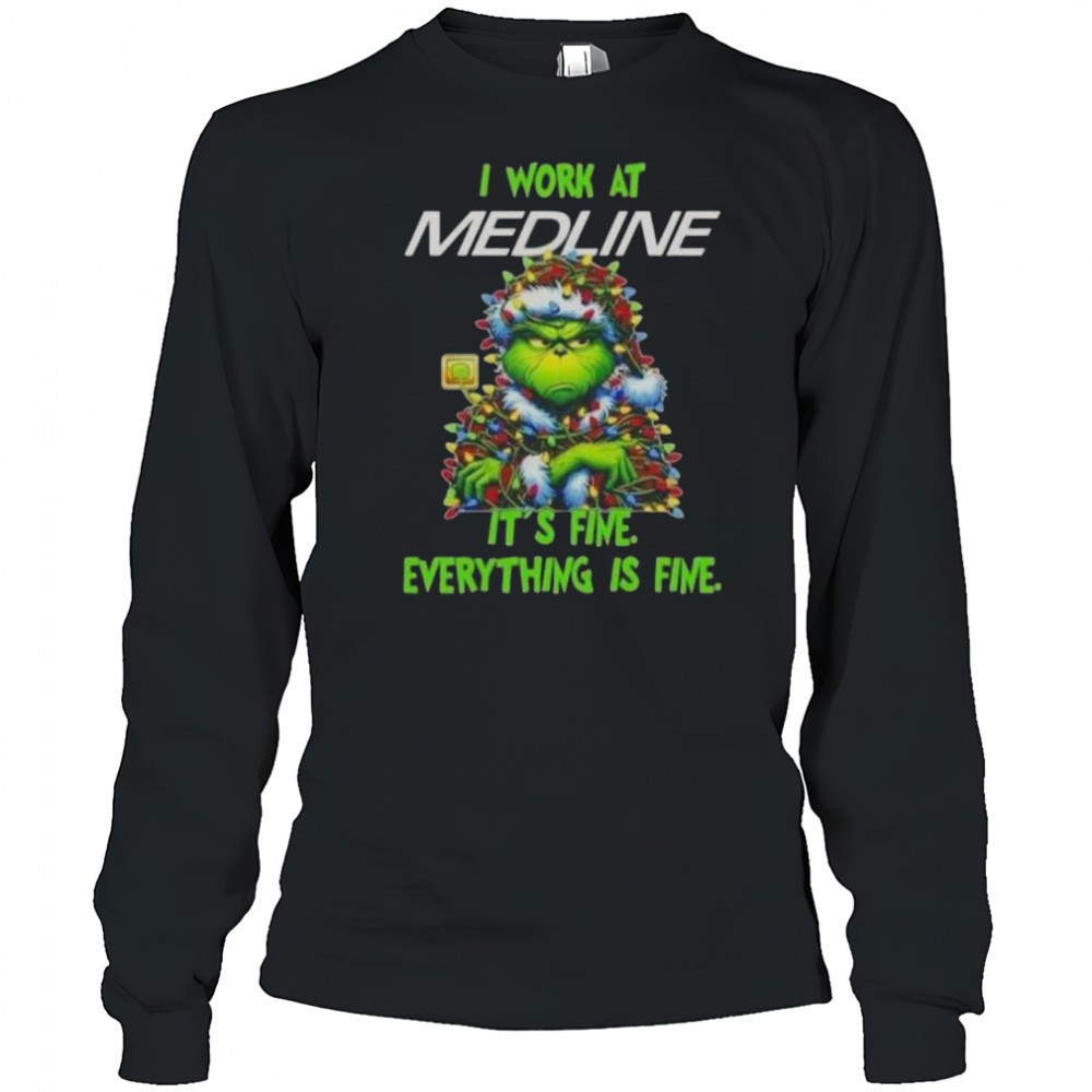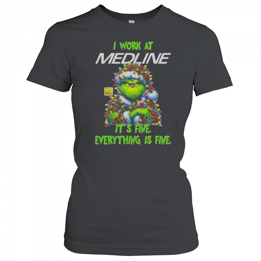 Grinch Christmas Tree X Medline I Work At Its Fine Everything Is Fine T-Shirt