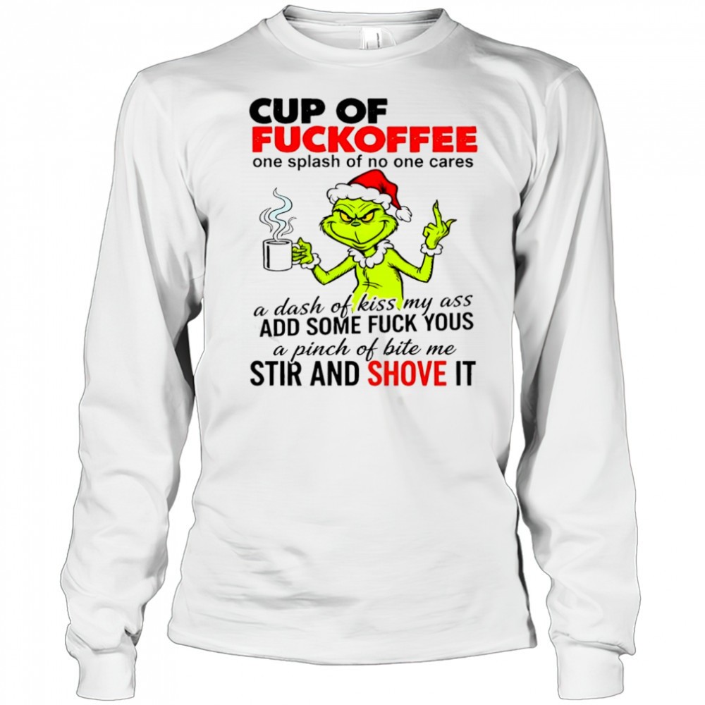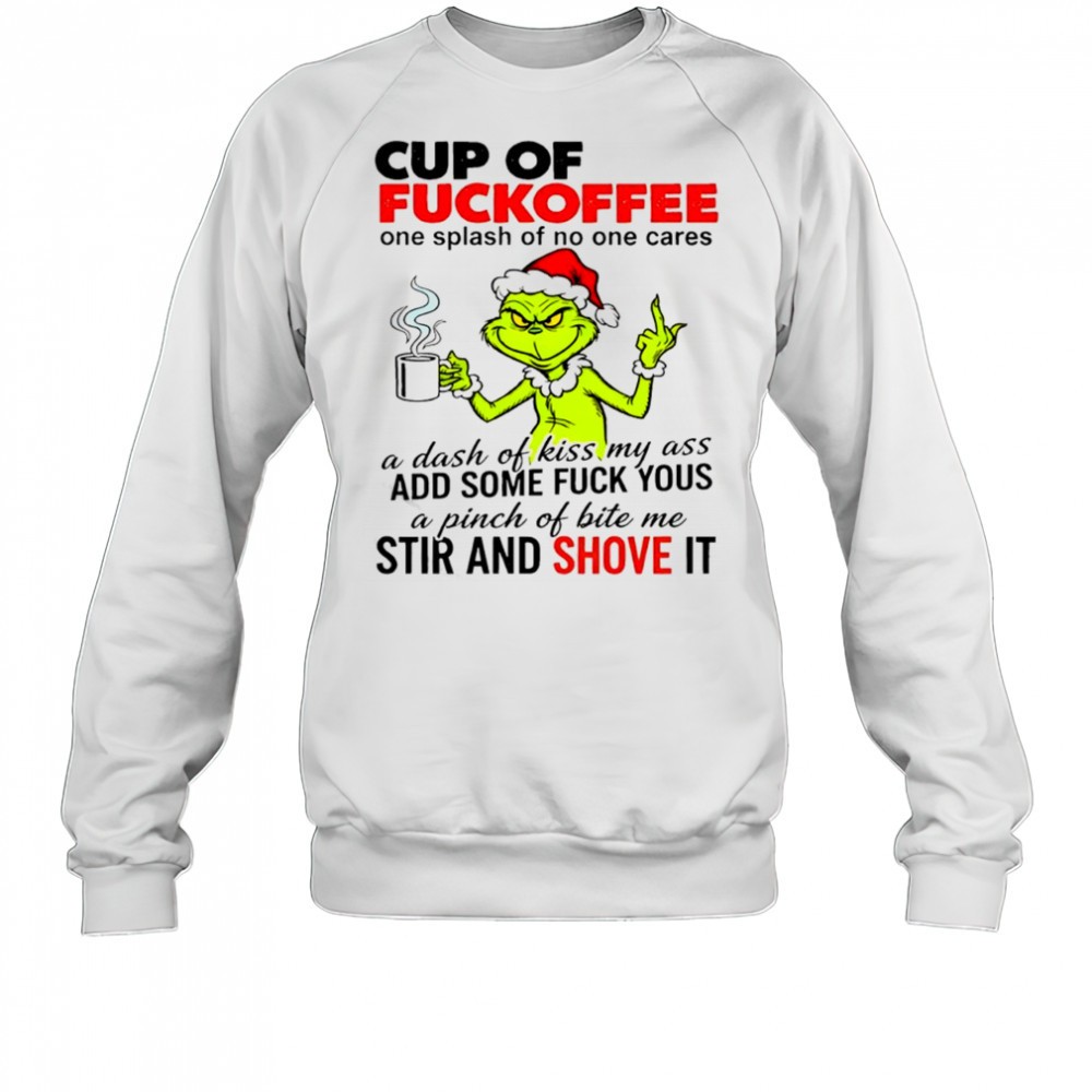 Grinch cup of fuckoffee one splash of no one cares shirt