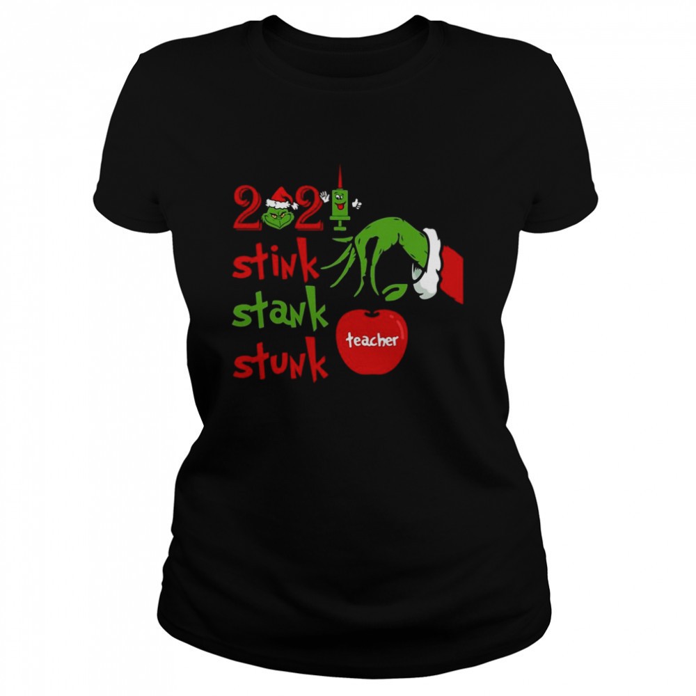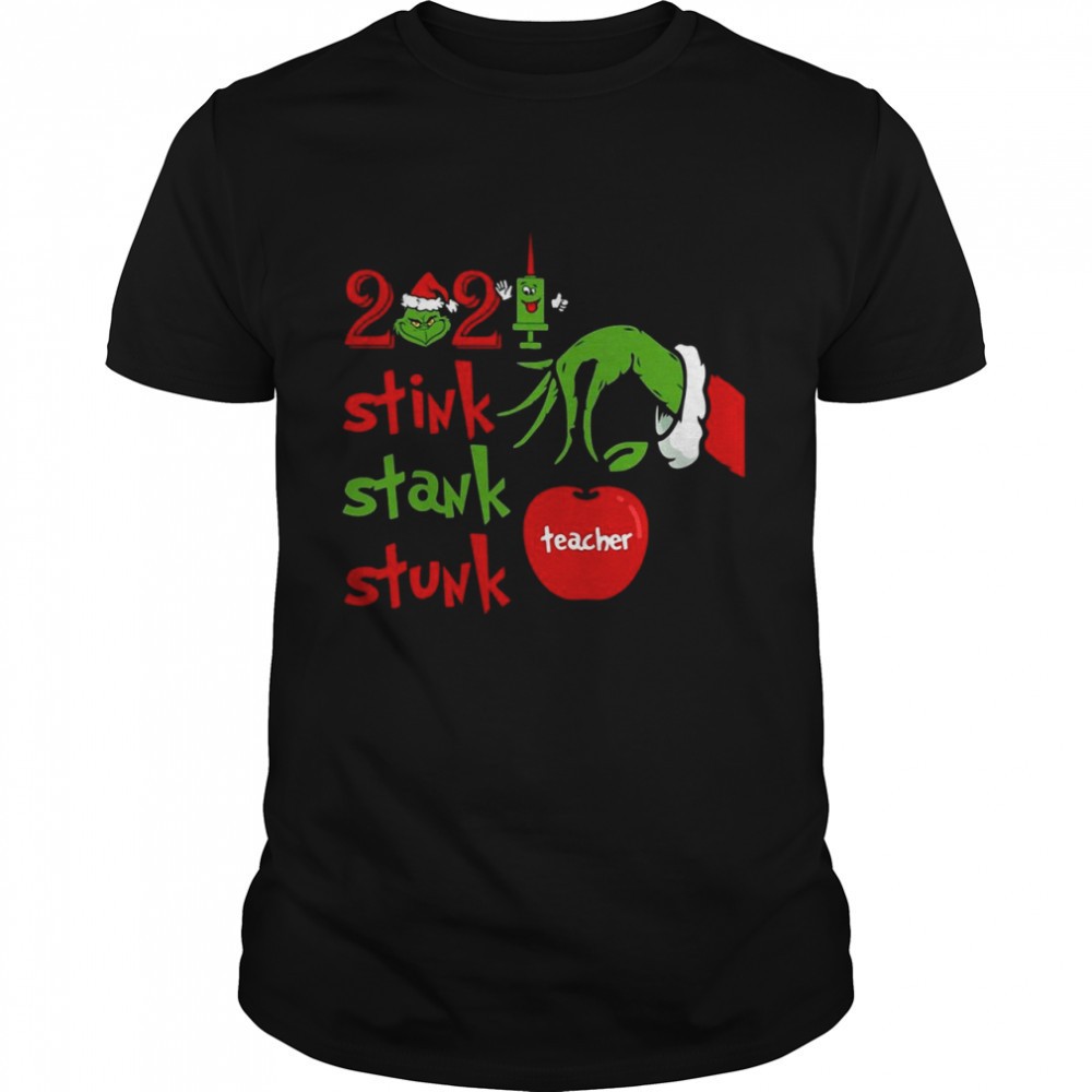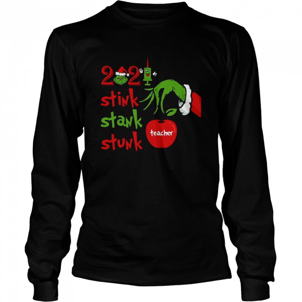 Grinch Hand Holding 2025 Teacher Stink Stank Stunk Christmas Sweater Shirt