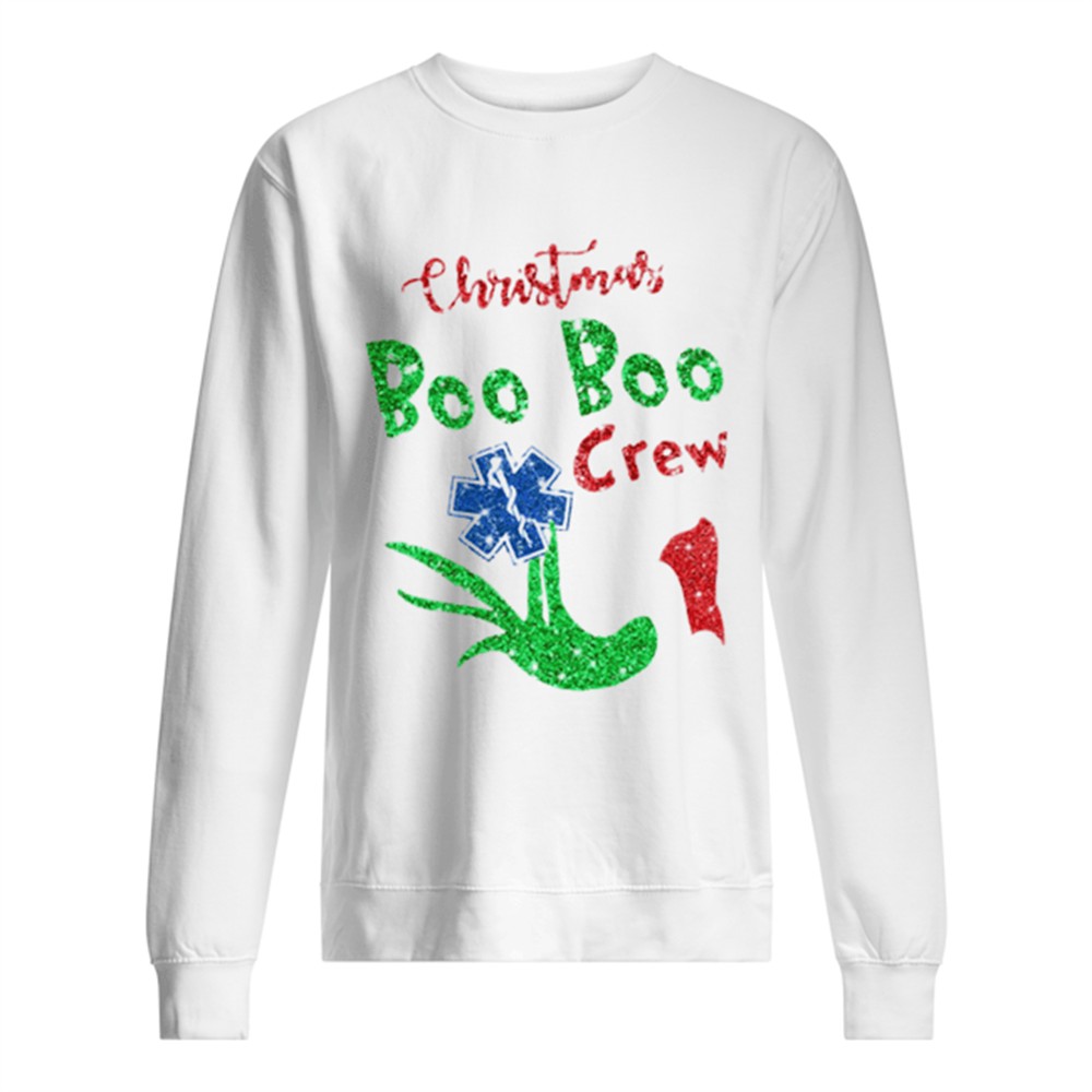 Grinch Hand Holding EMS Christmas Boo Boo Crew shirt
