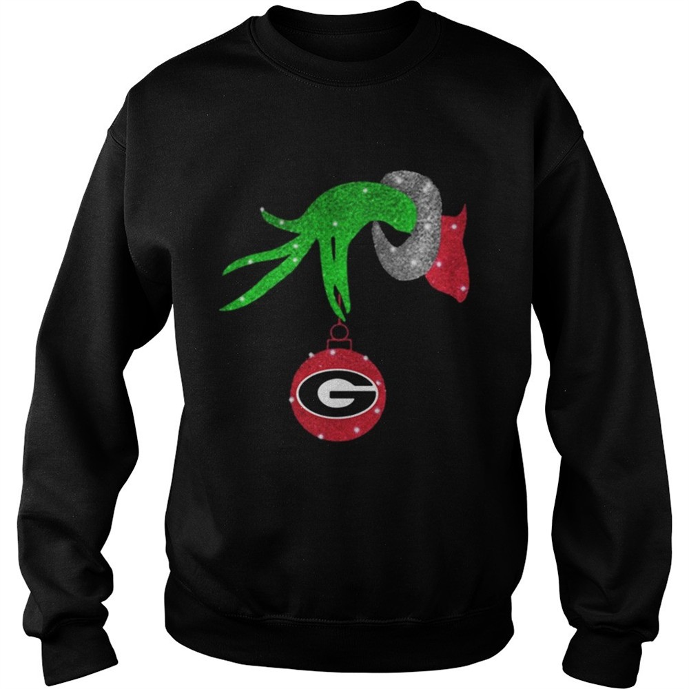 Grinch hand holding Georgia Bulldogs Glitter Christmas shirt