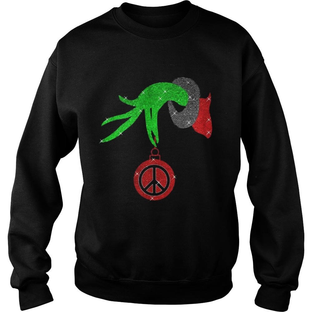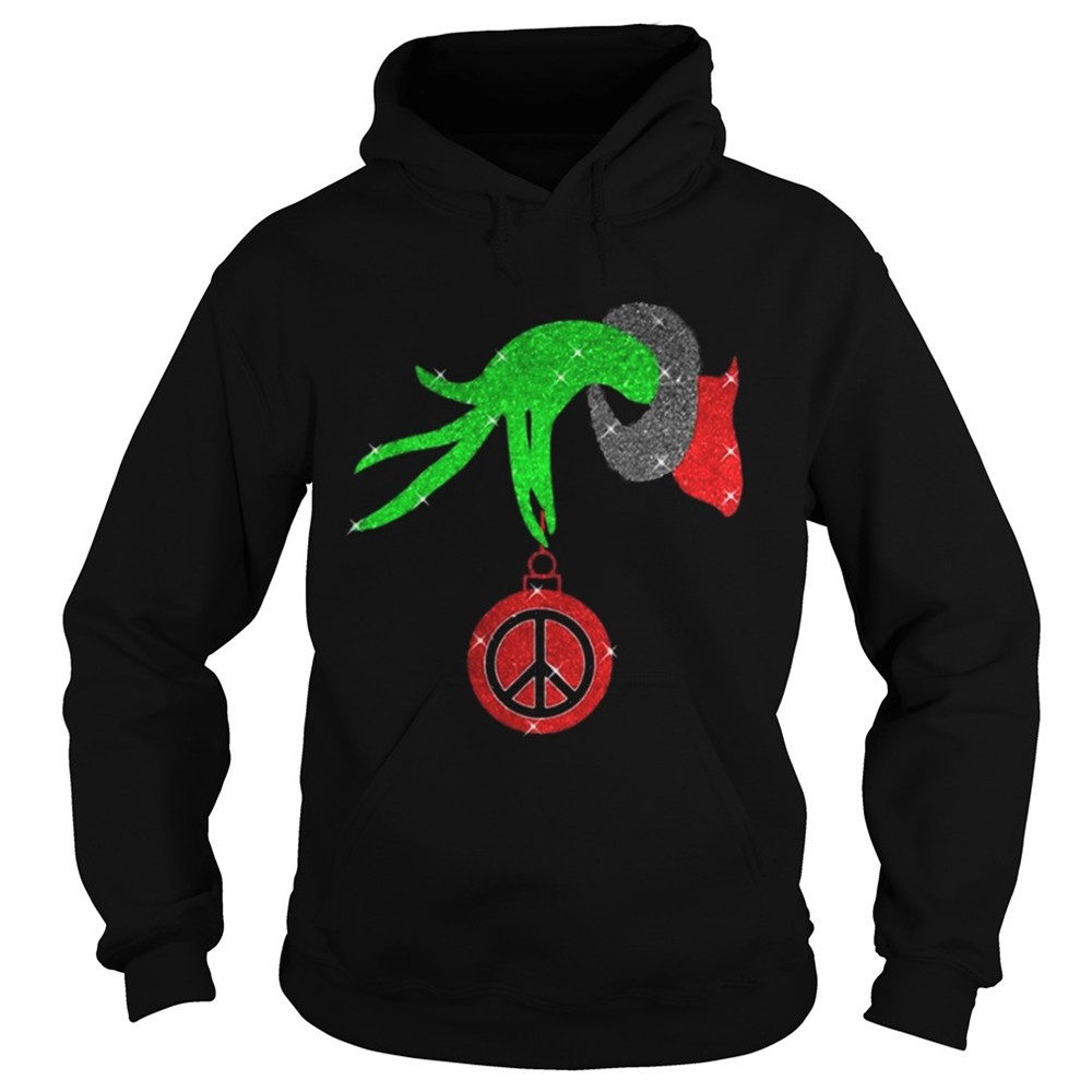 Grinch hand holding Hippie peace ornament Christmas shirt