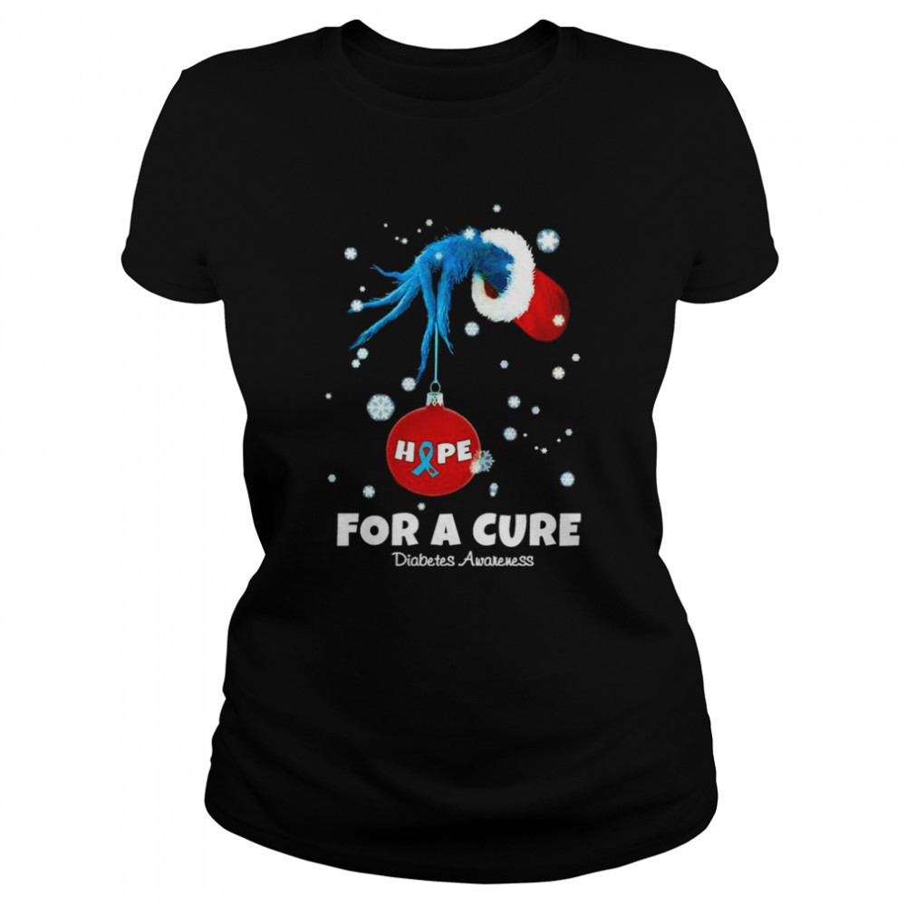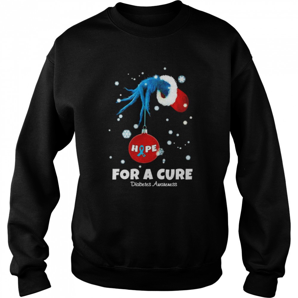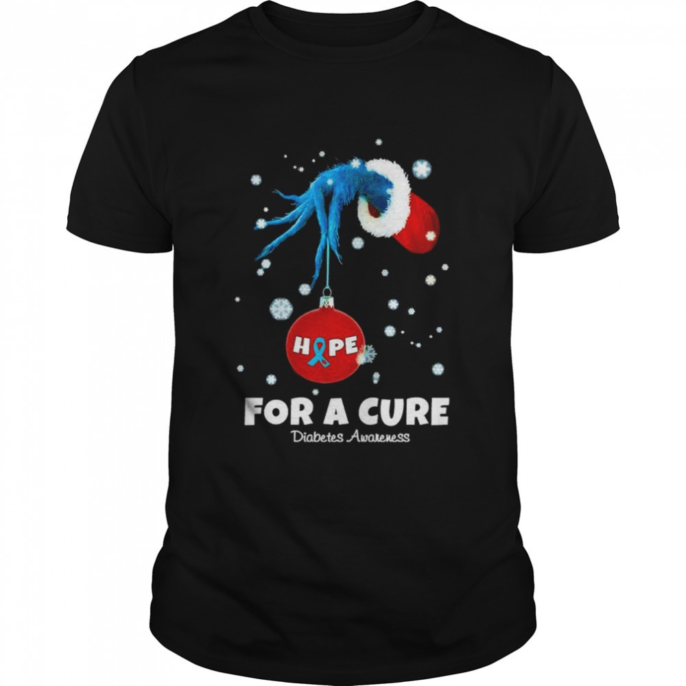 Grinch hand holding ornament Hope for a cure Diabetes Awakeness christmas shirt