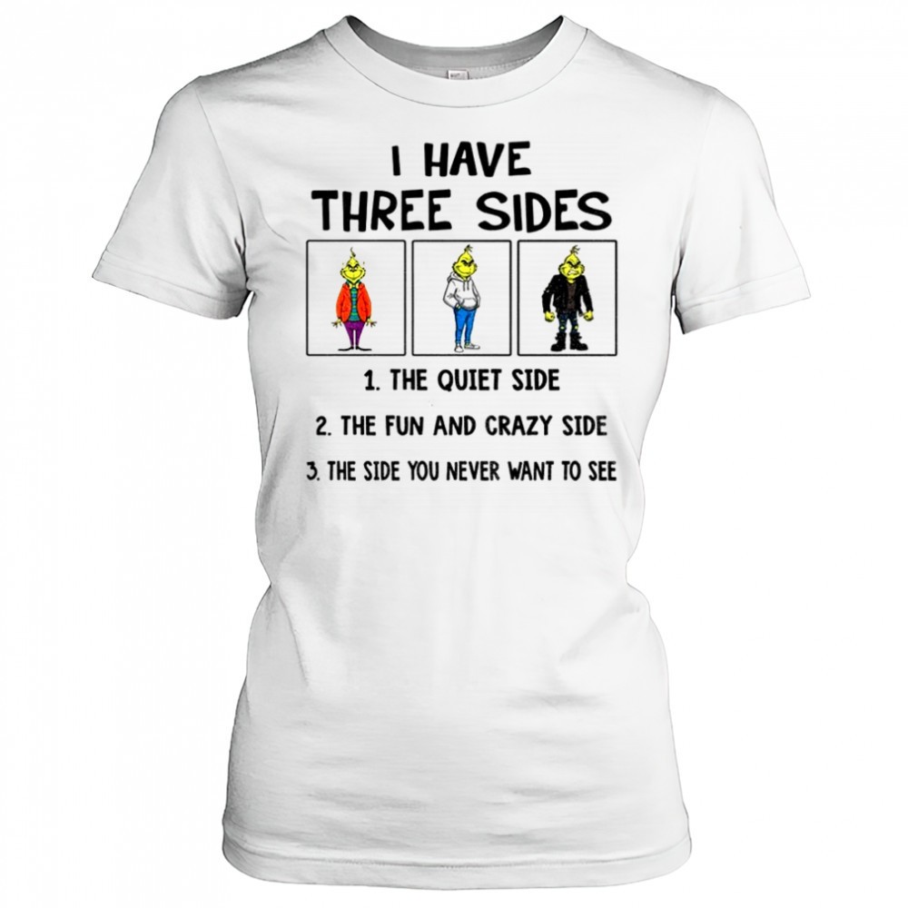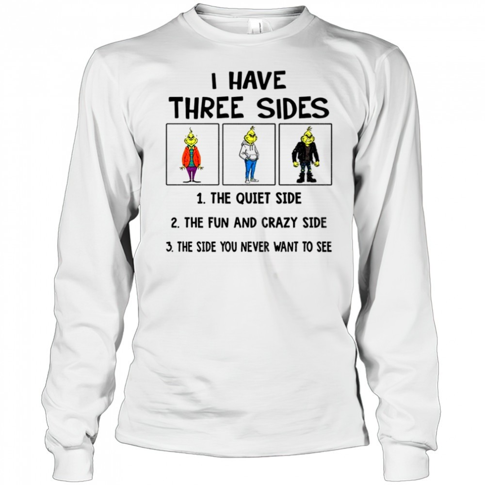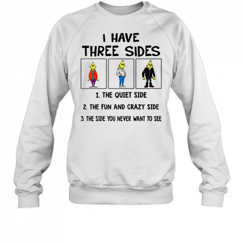 Grinch I have three side the fun and crazy side the side you never want to see Christmas shirt