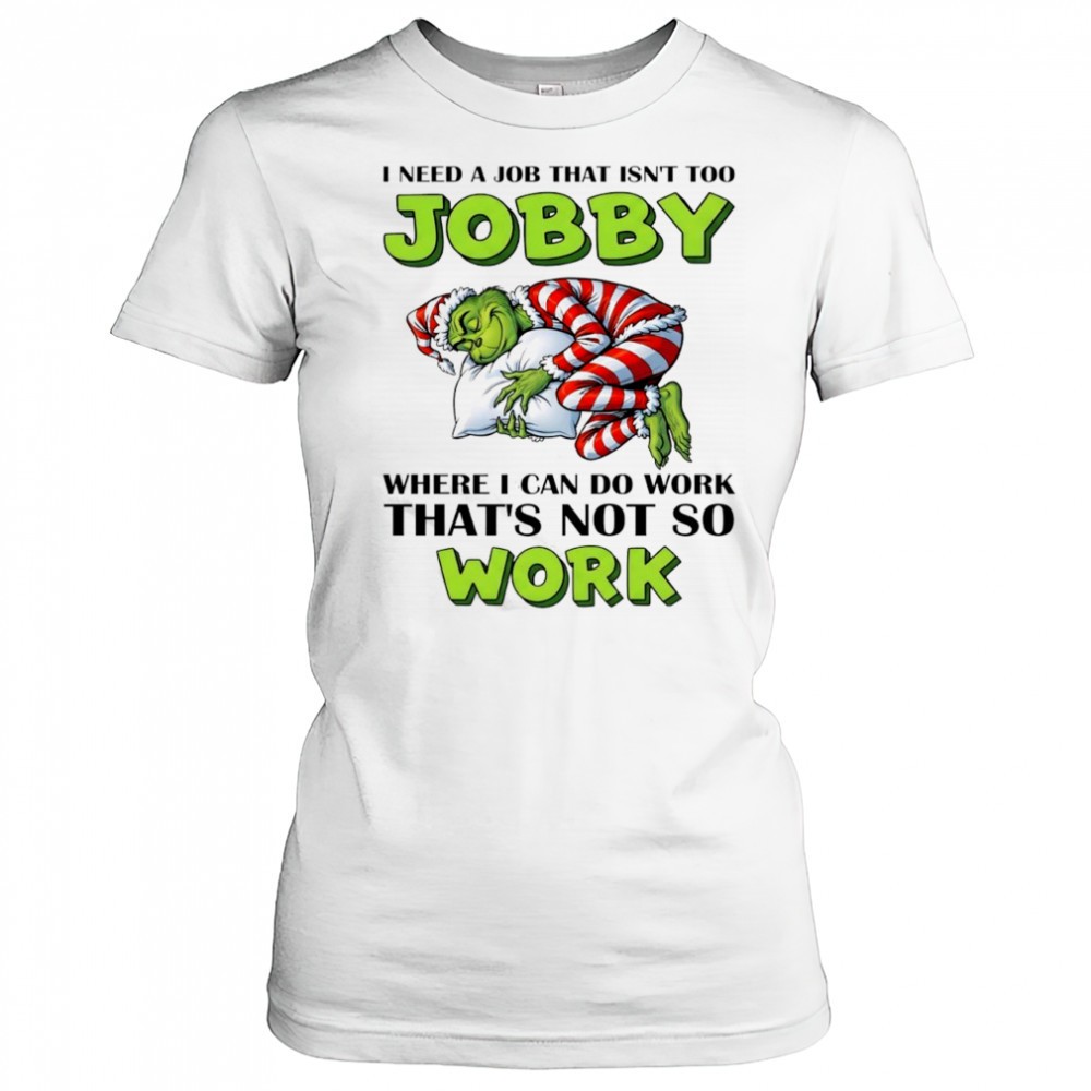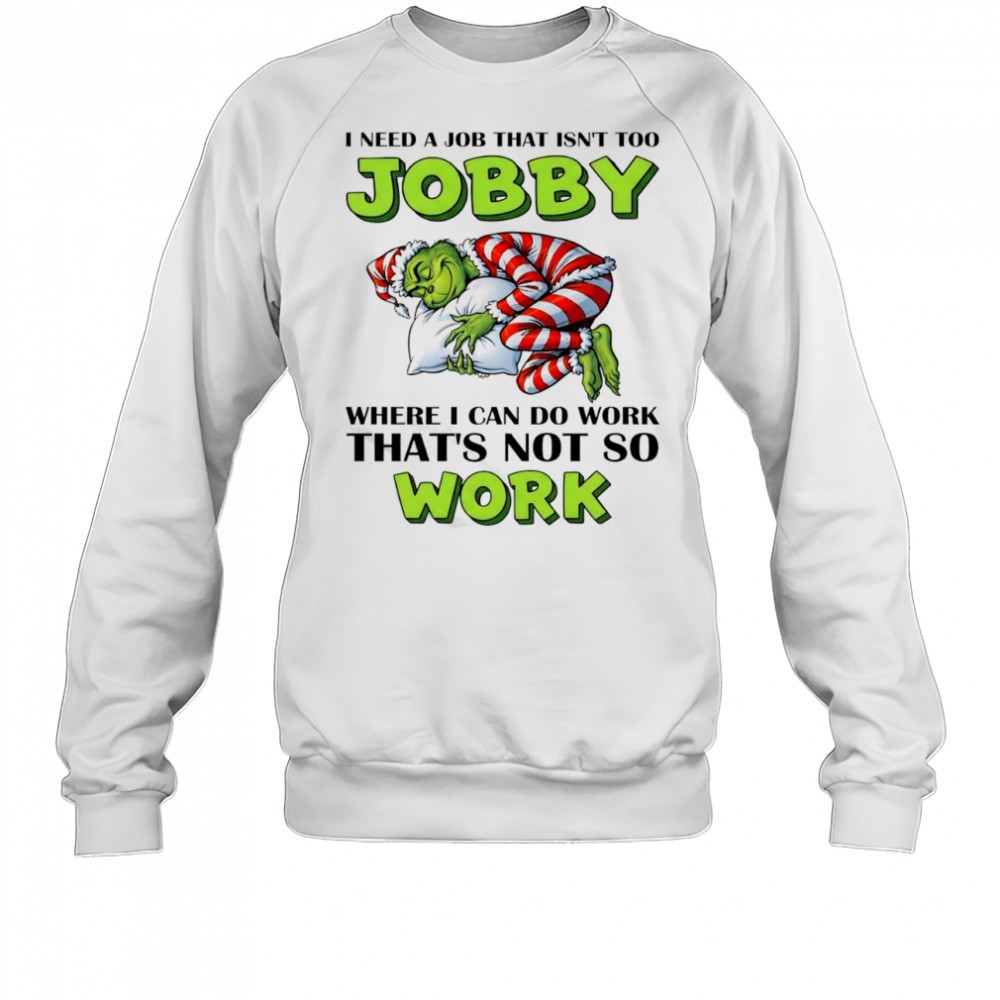 Grinch I need a job that isnt too jobby where I can do work thats not so work Christmas shirt