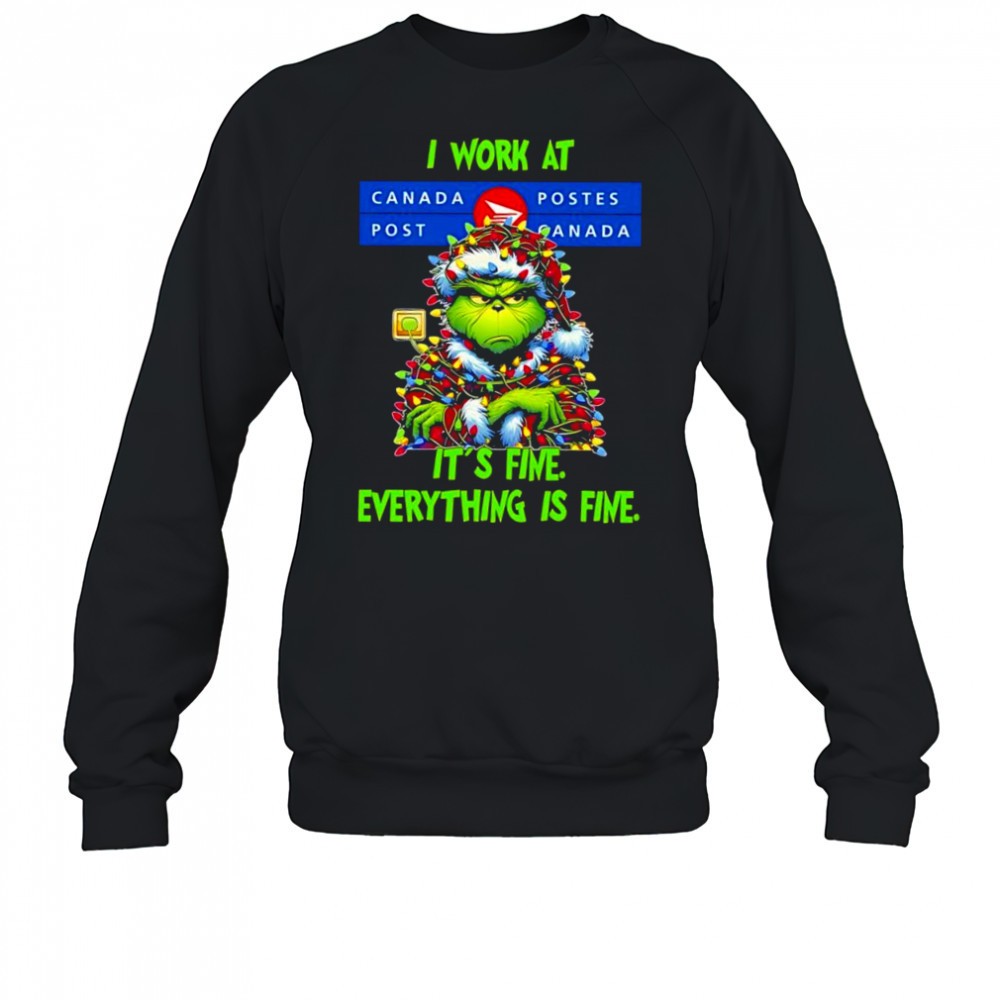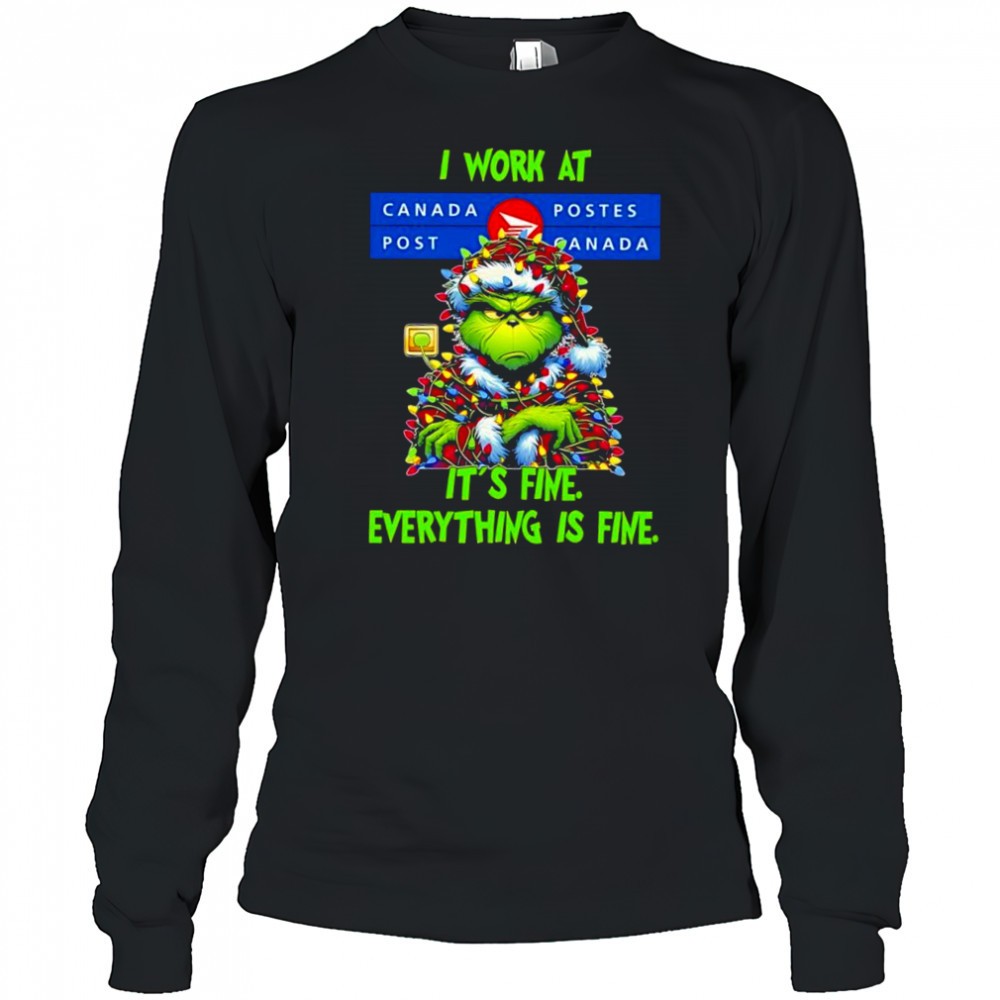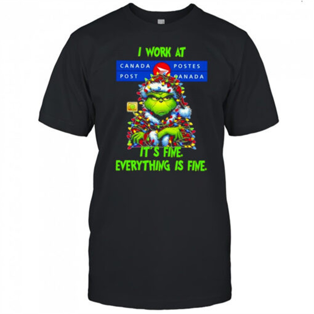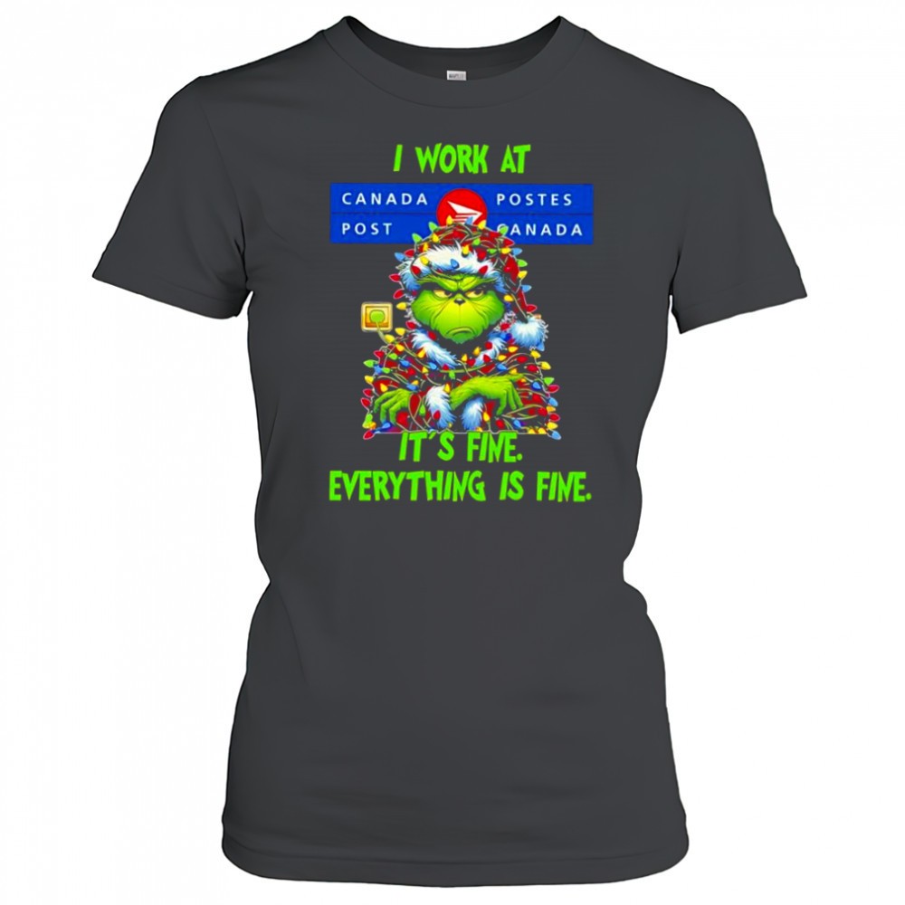 Grinch i work at Canada Post logo its fine everything is fine shirt