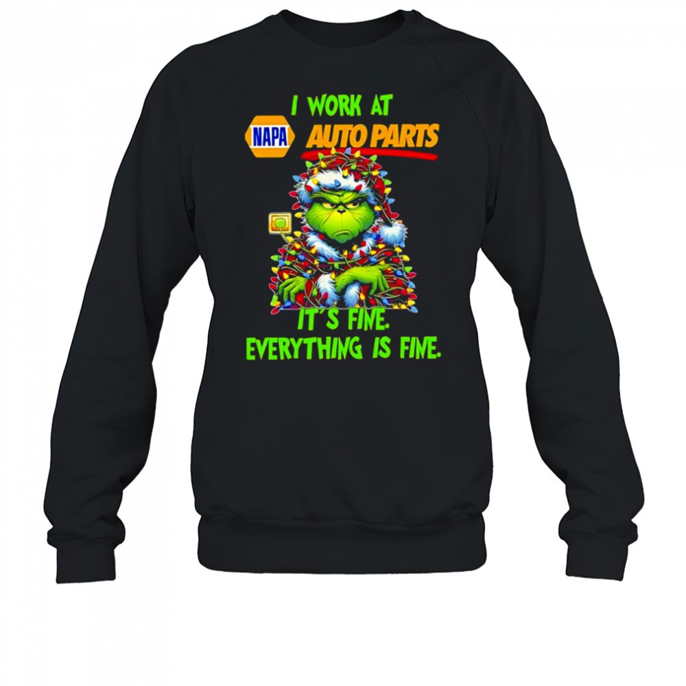 Grinch i work at NAPA Auto Parts logo its fine everything is fine shirt