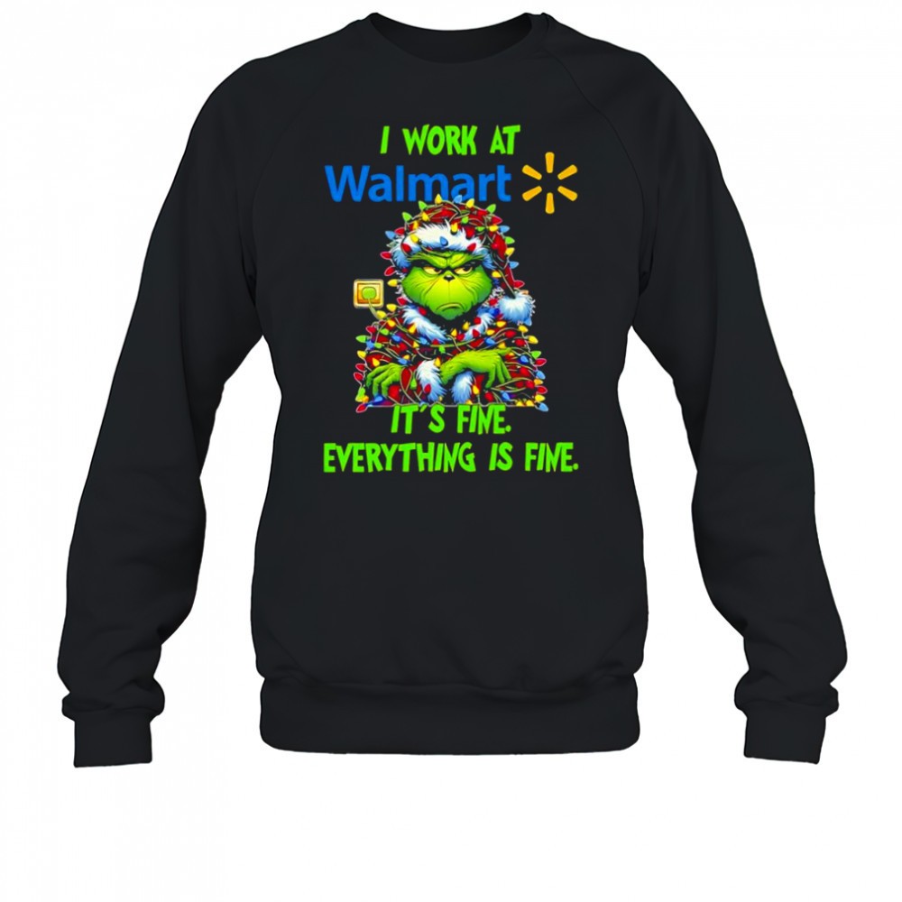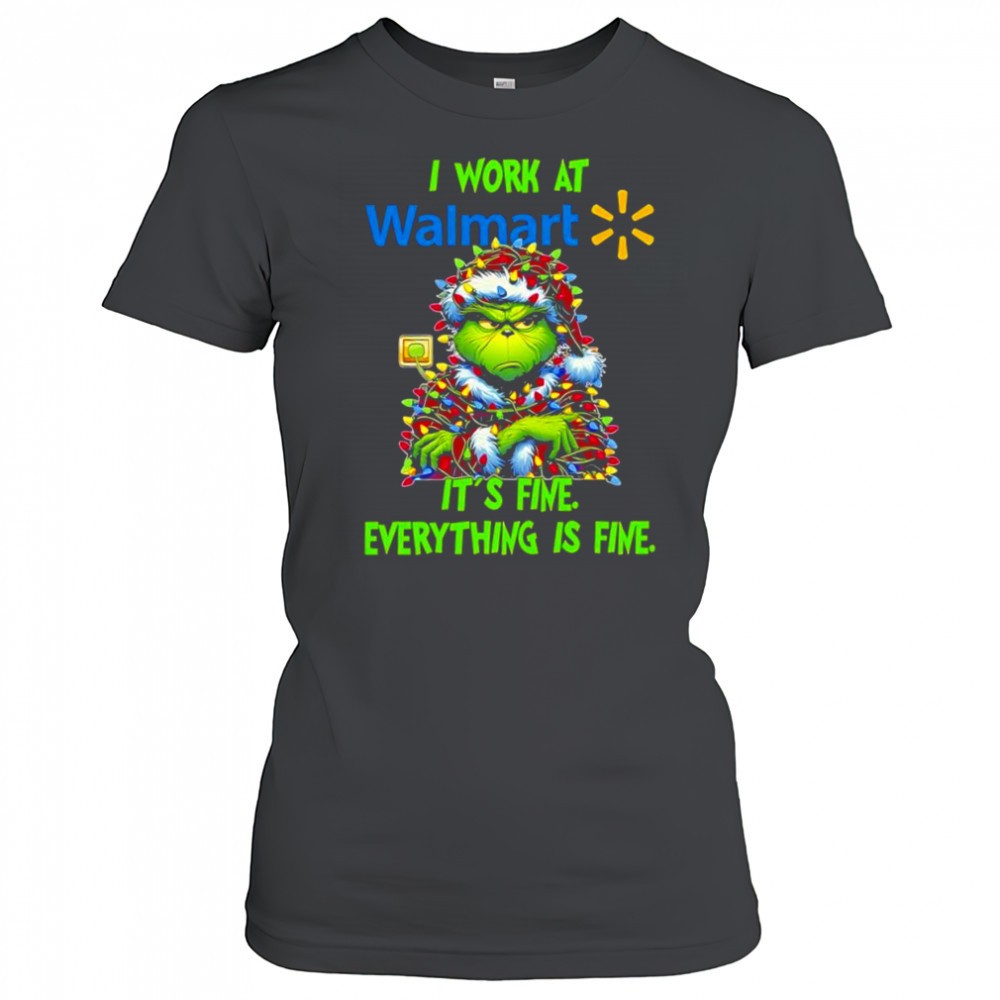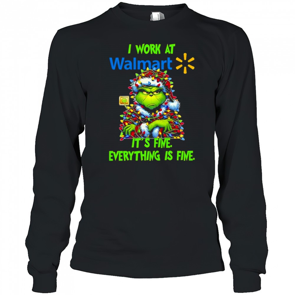 Grinch i work at Walmart logo its fine everything is fine shirt