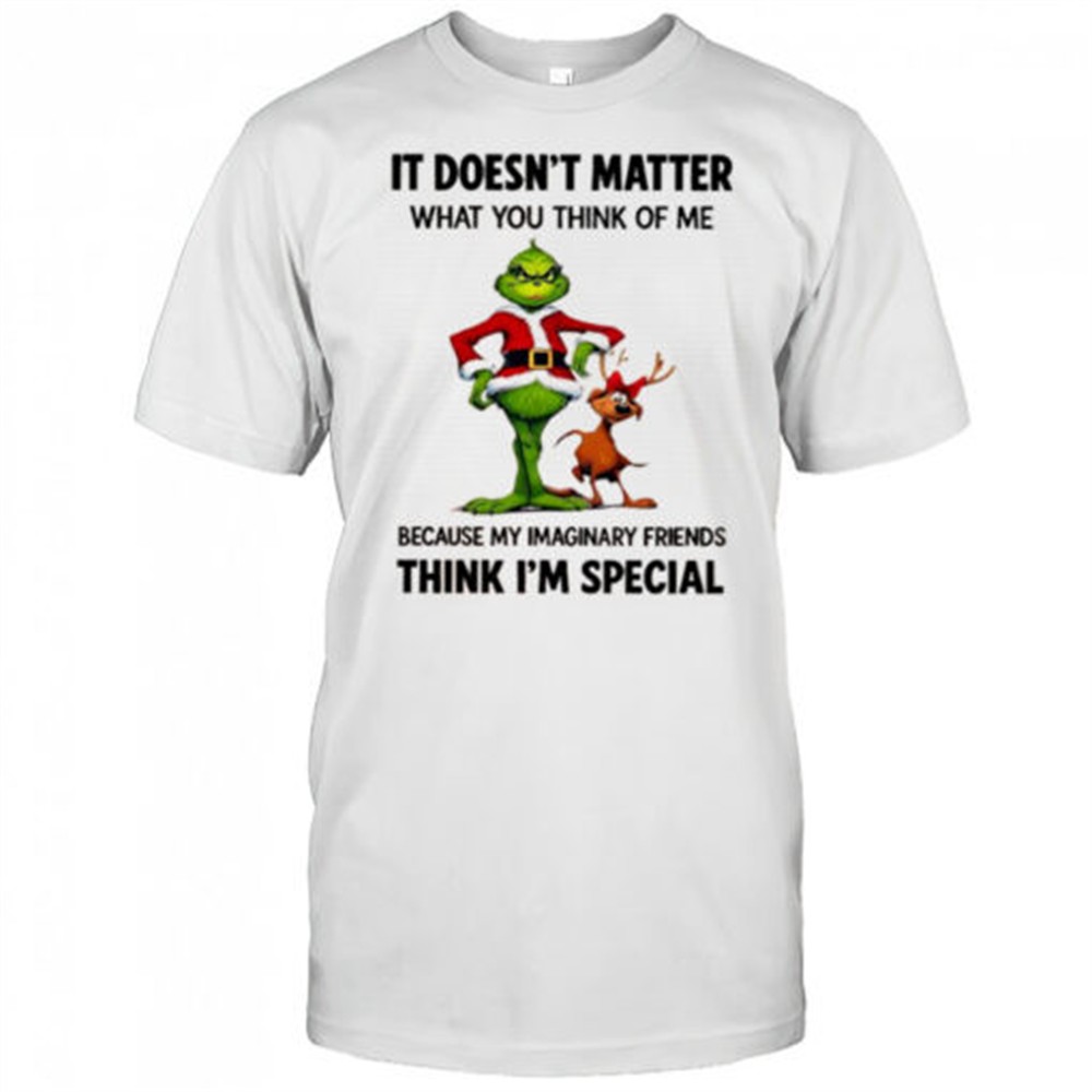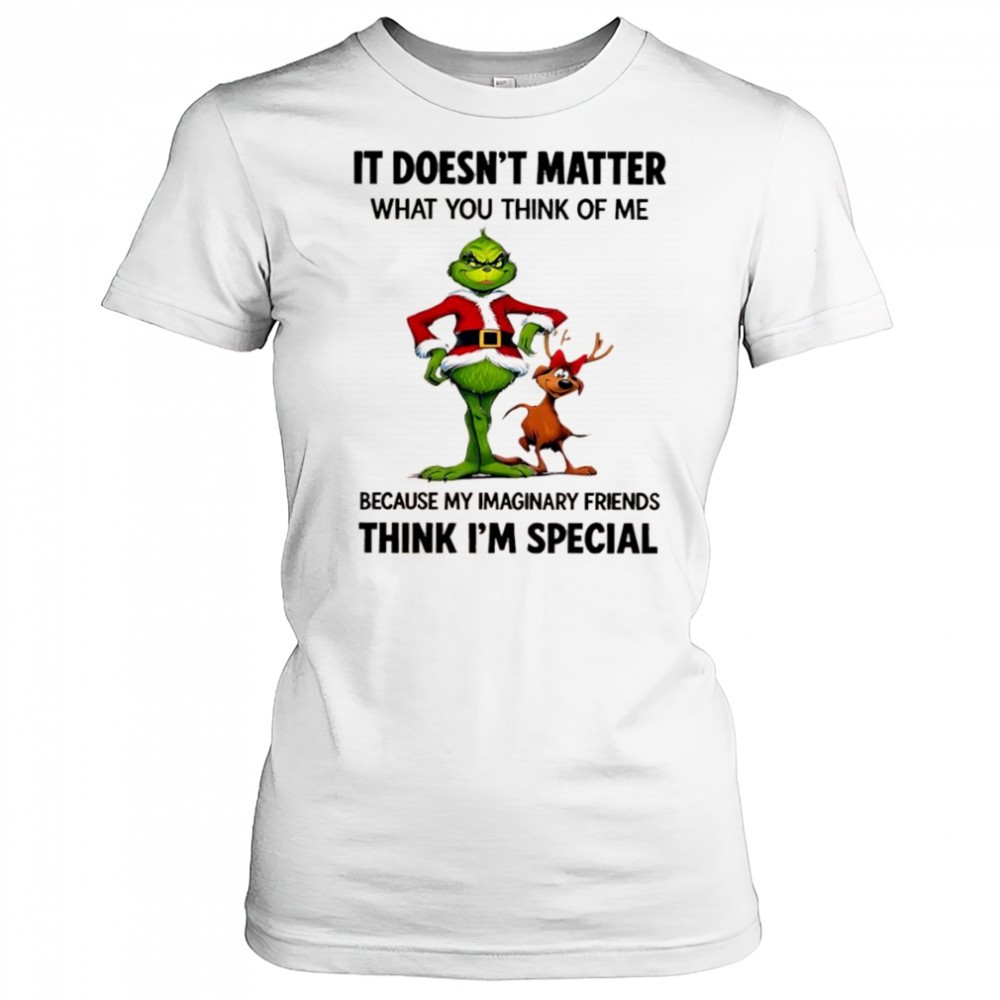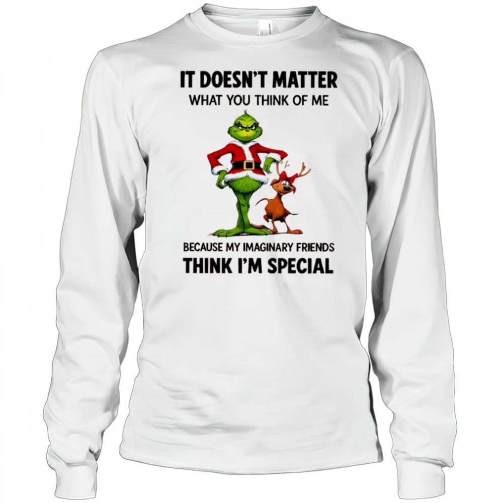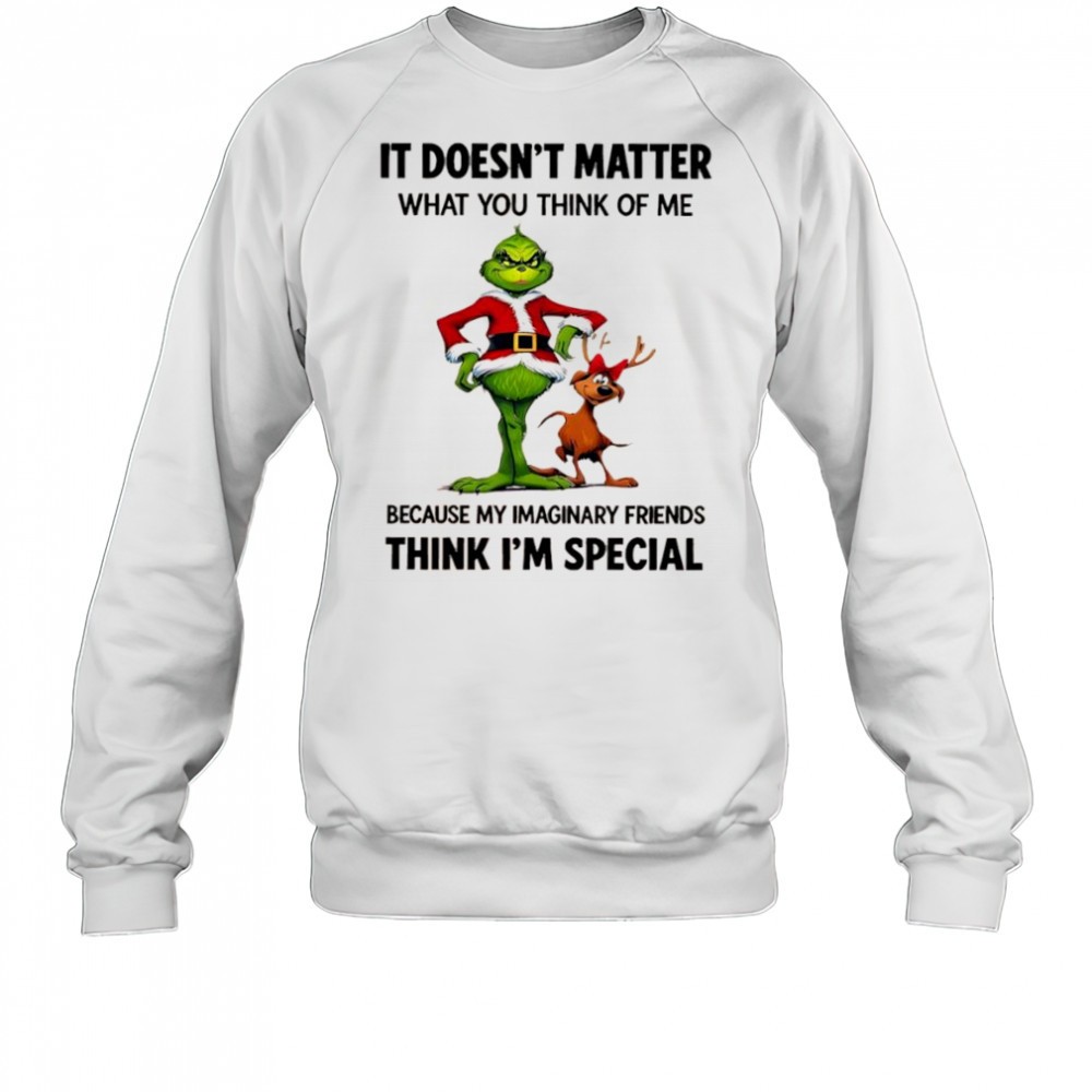 Grinch Max it doesnt matter what you think of me because my imaginary friends think im special shirt