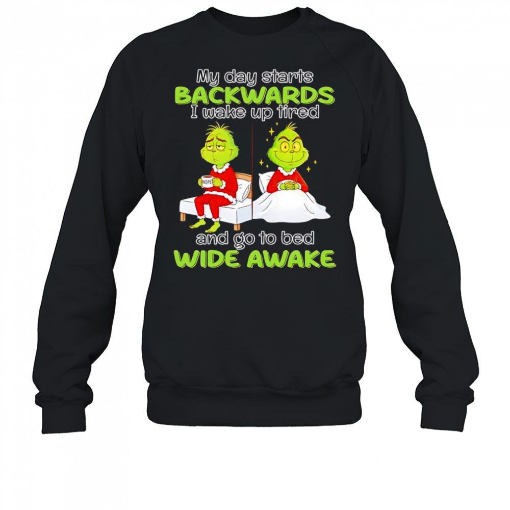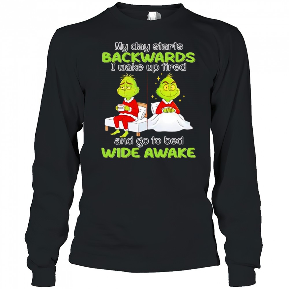 Grinch my day starts backwards i wake up tired and go to bed wide awake shirt – Copy