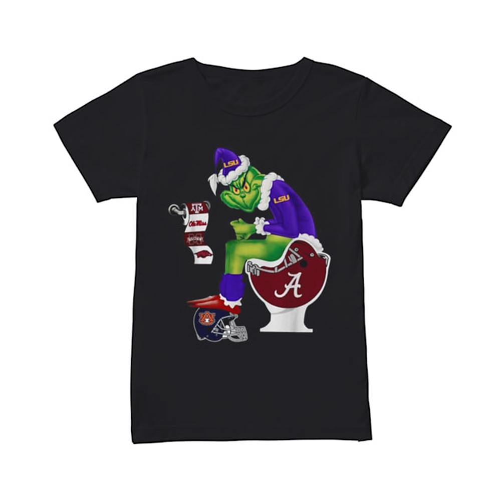 Grinch Santa Alabama Crimson Tide Sitting LSU Tigers Toilet Auburn Tigers Texas A&M Aggies shirt