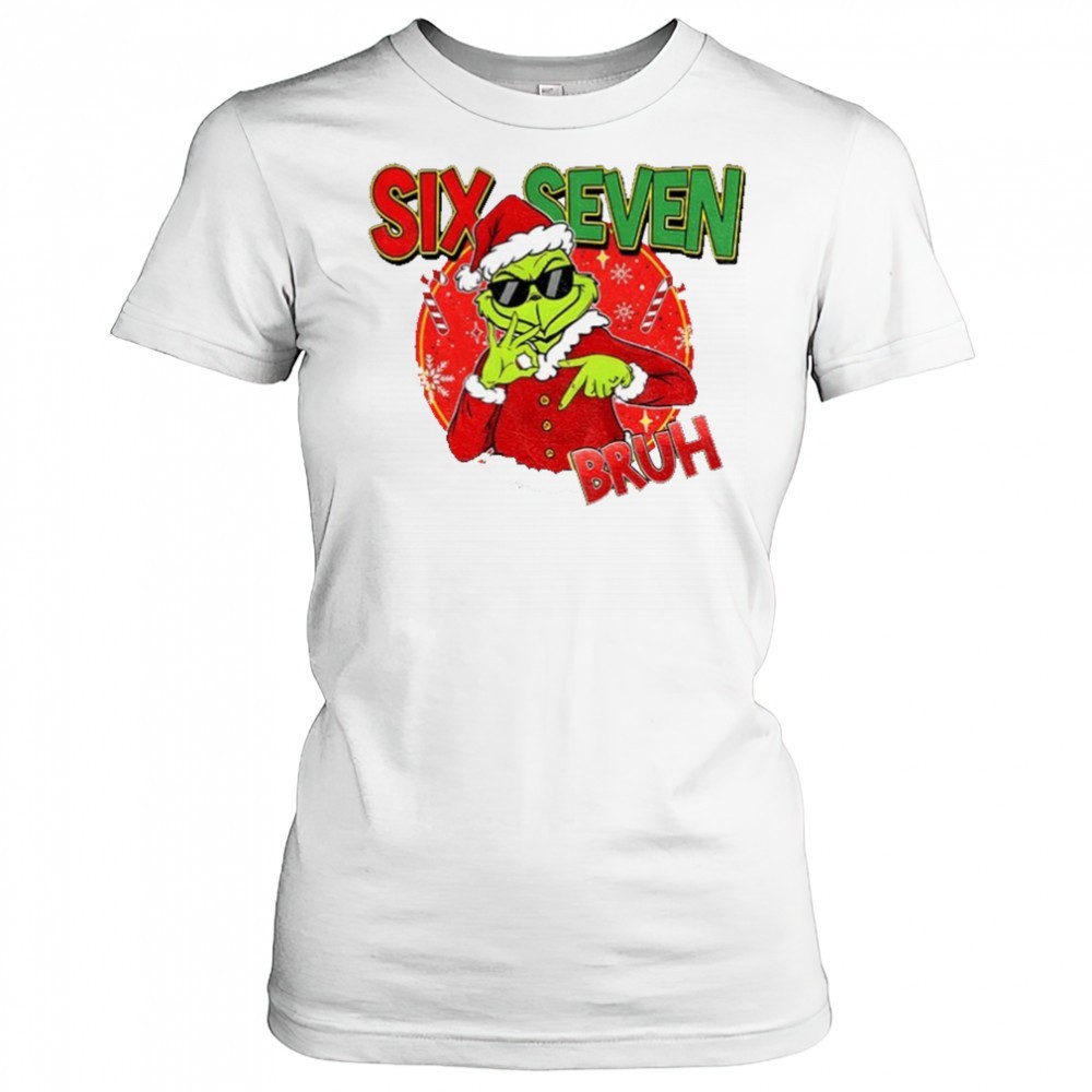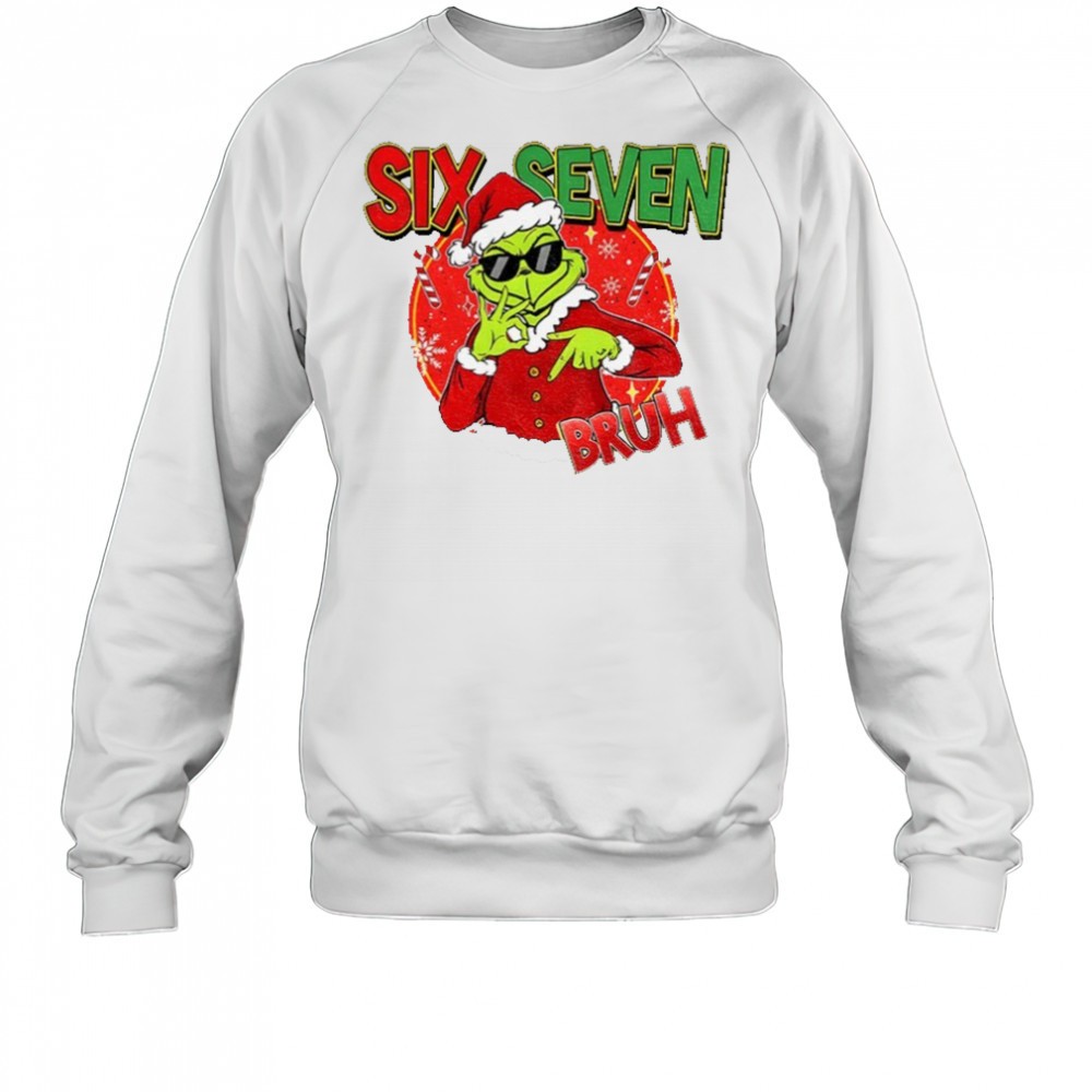 Grinch Santa green movie character six seven bruh Merry Christmas shirt