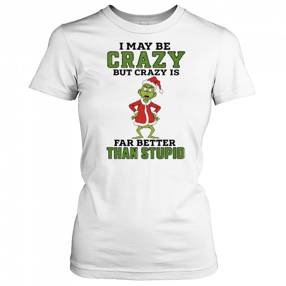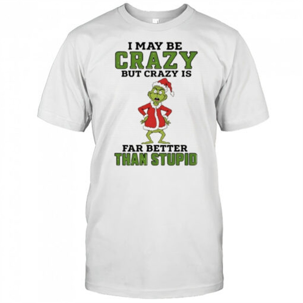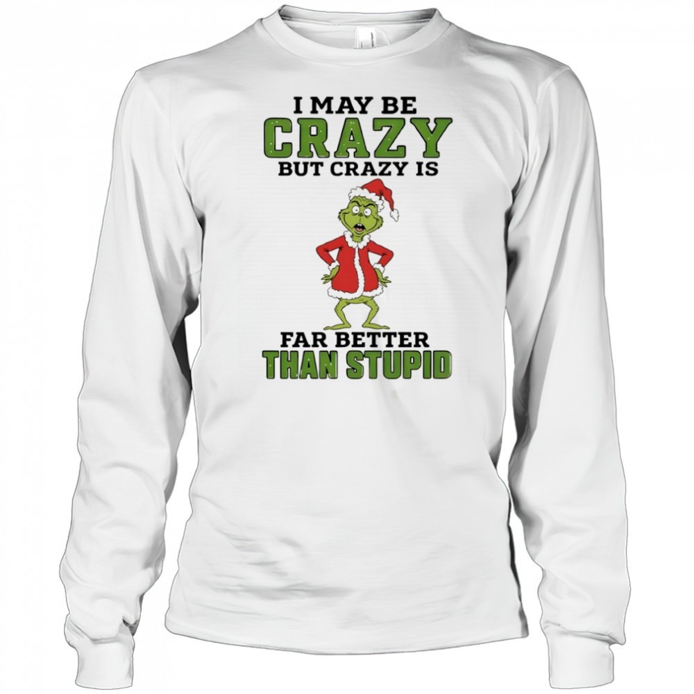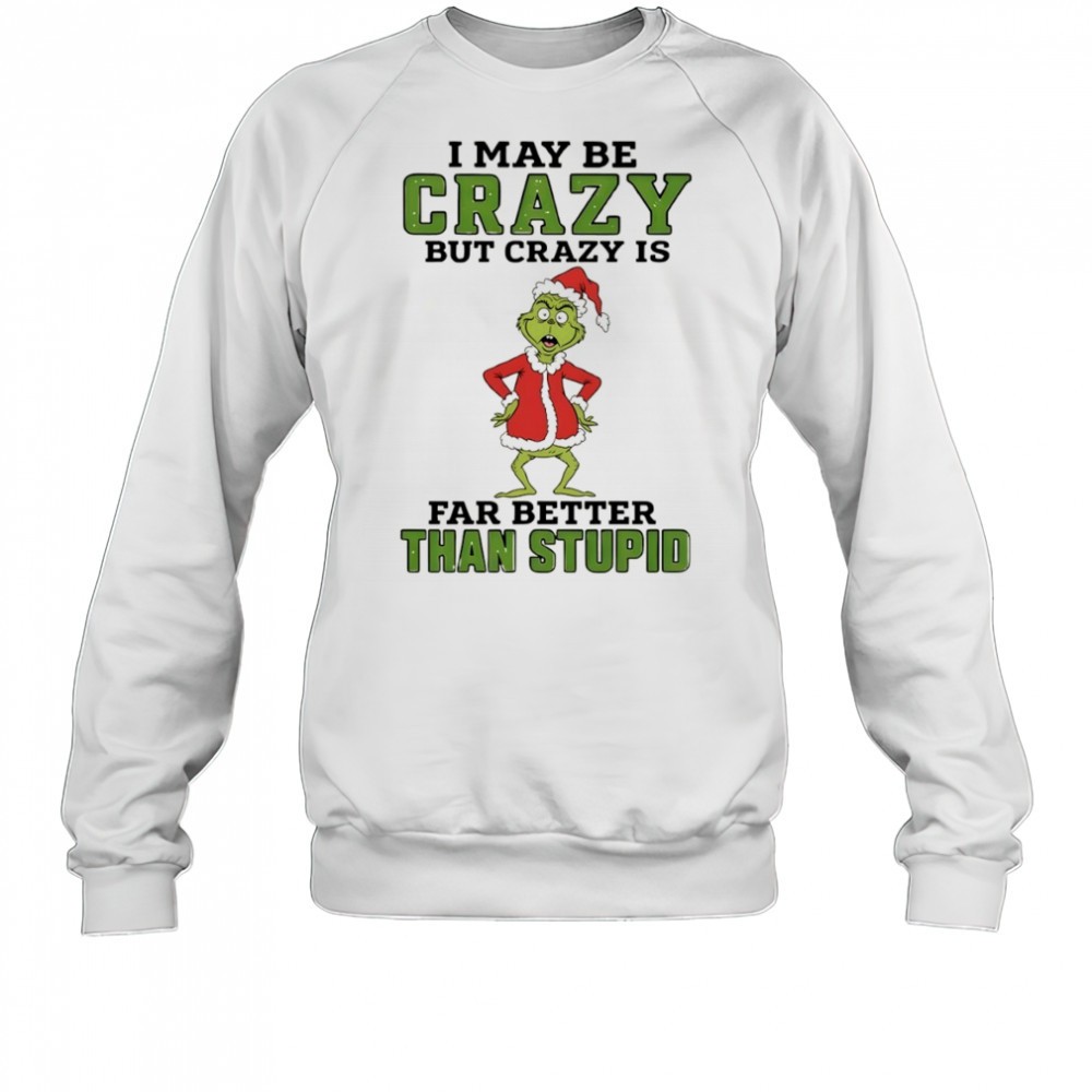 Grinch Santa hat I may be crazy but crazy is far better than stupid Christmas shirt