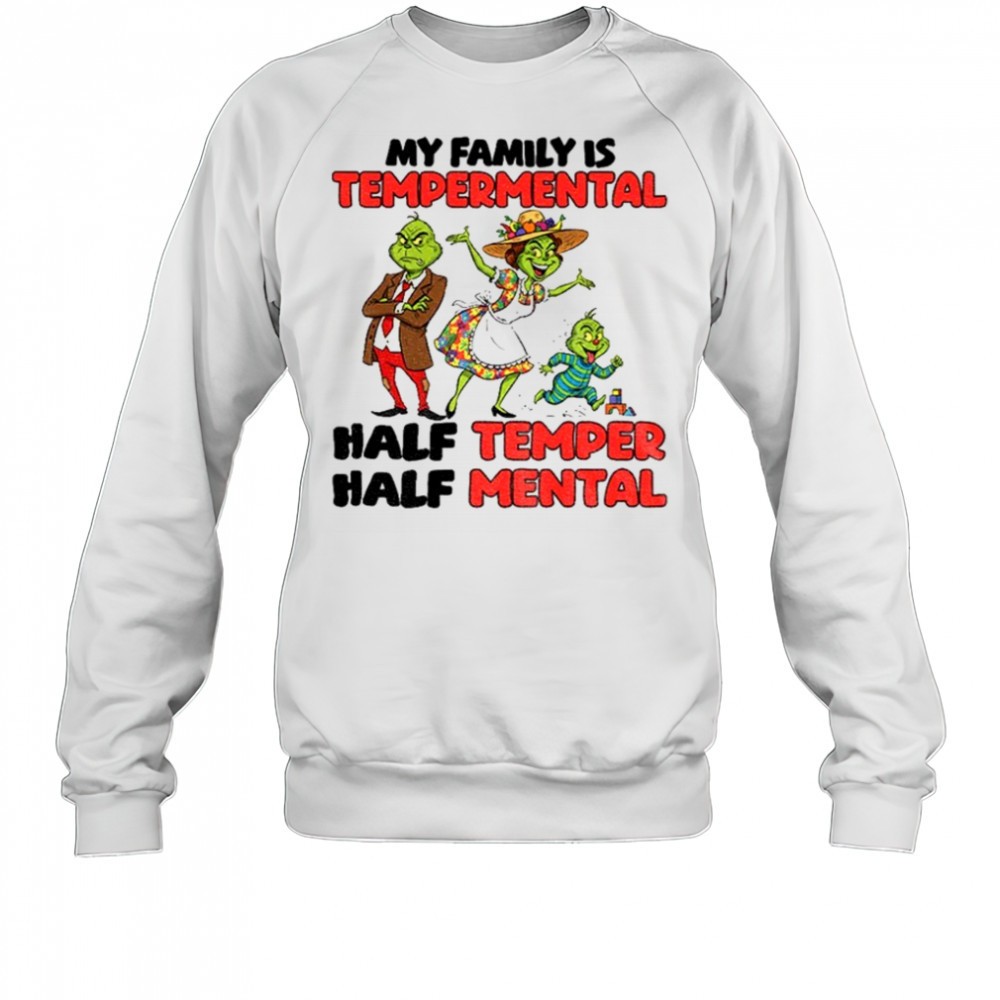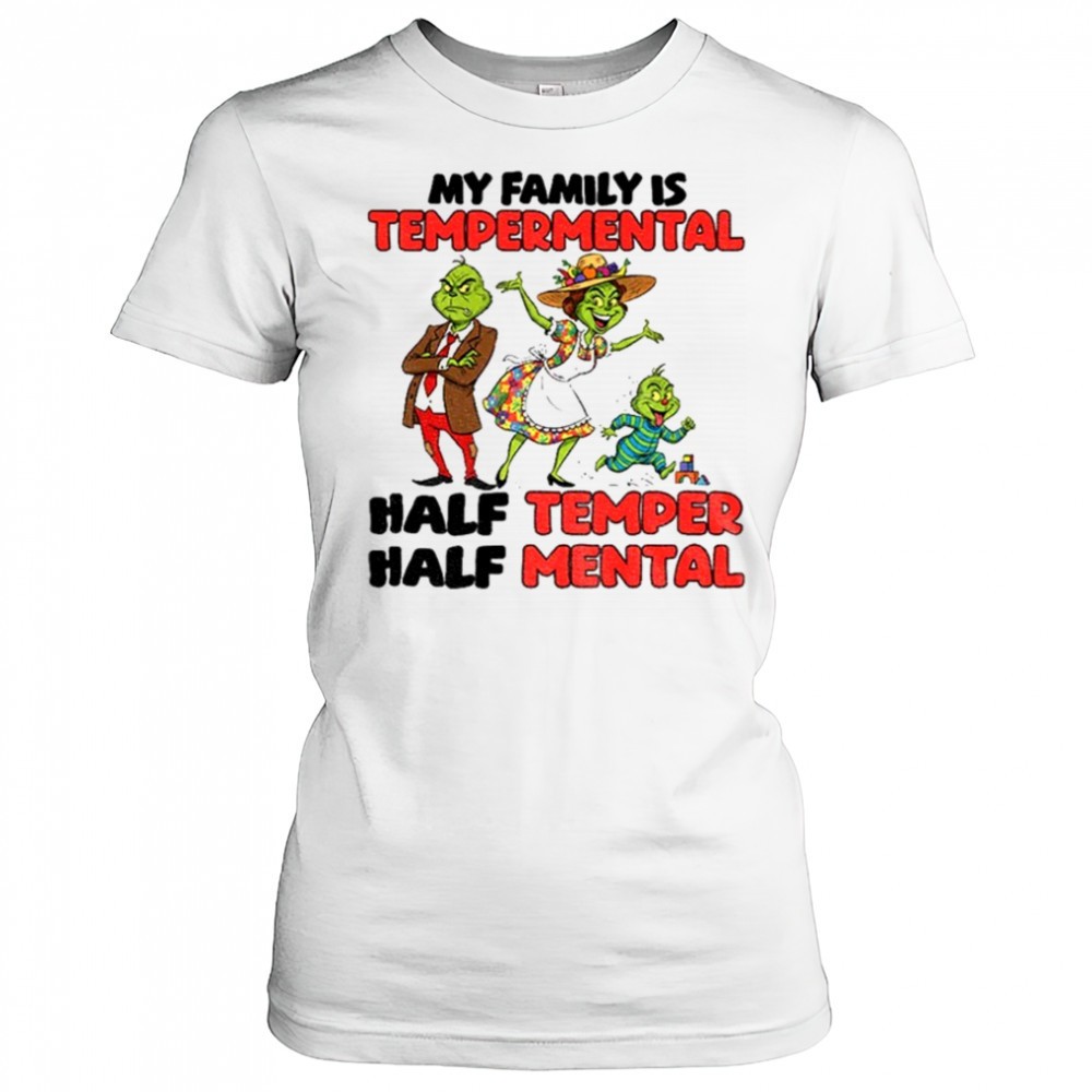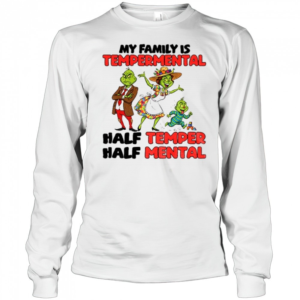 Grinch Santa hat my family is temperamental half temper half metal Christmas shirt