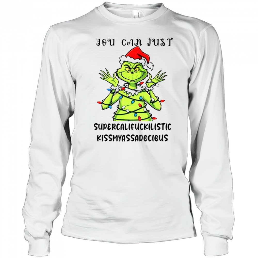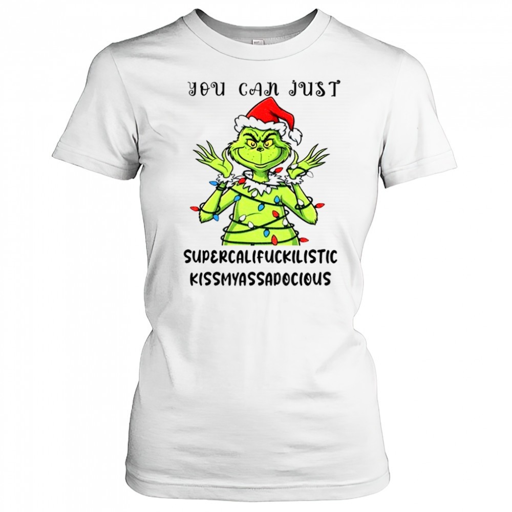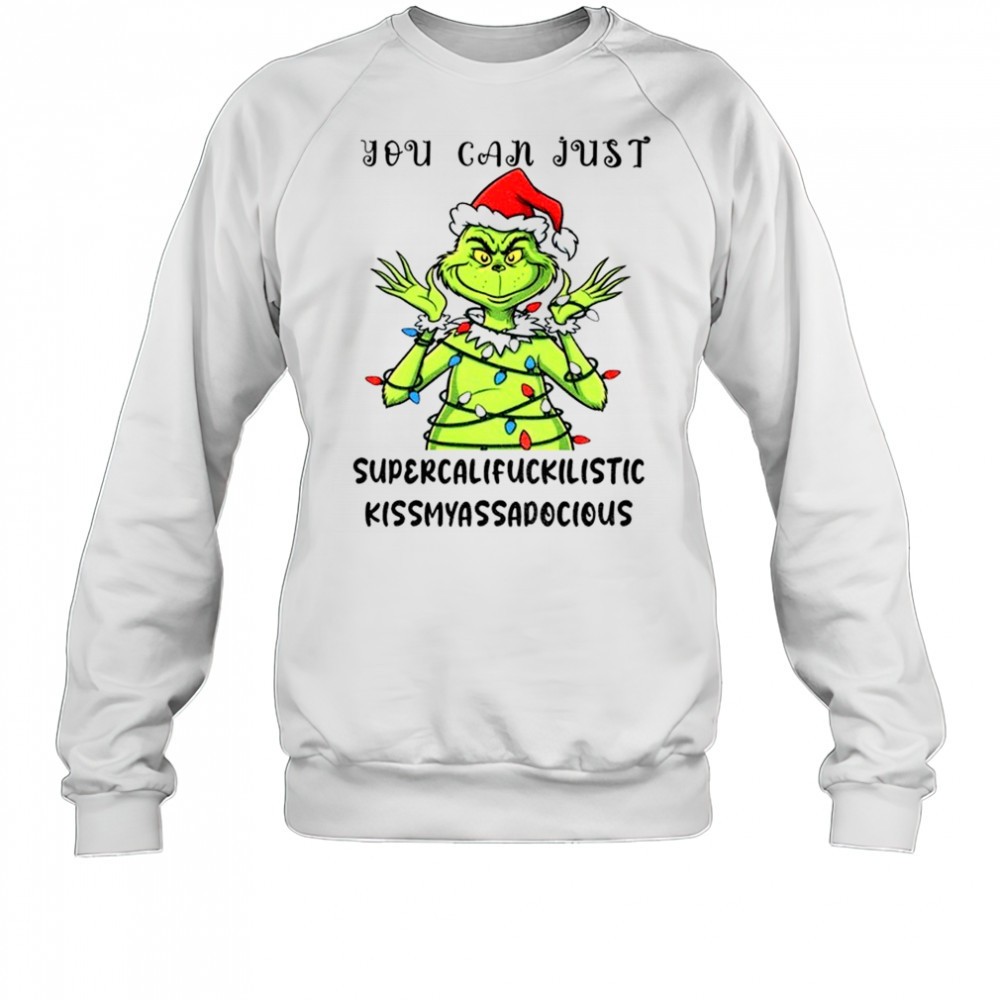 Grinch santa hat you can just supercalifuckilistic kissmyassadocious Christmas shirt