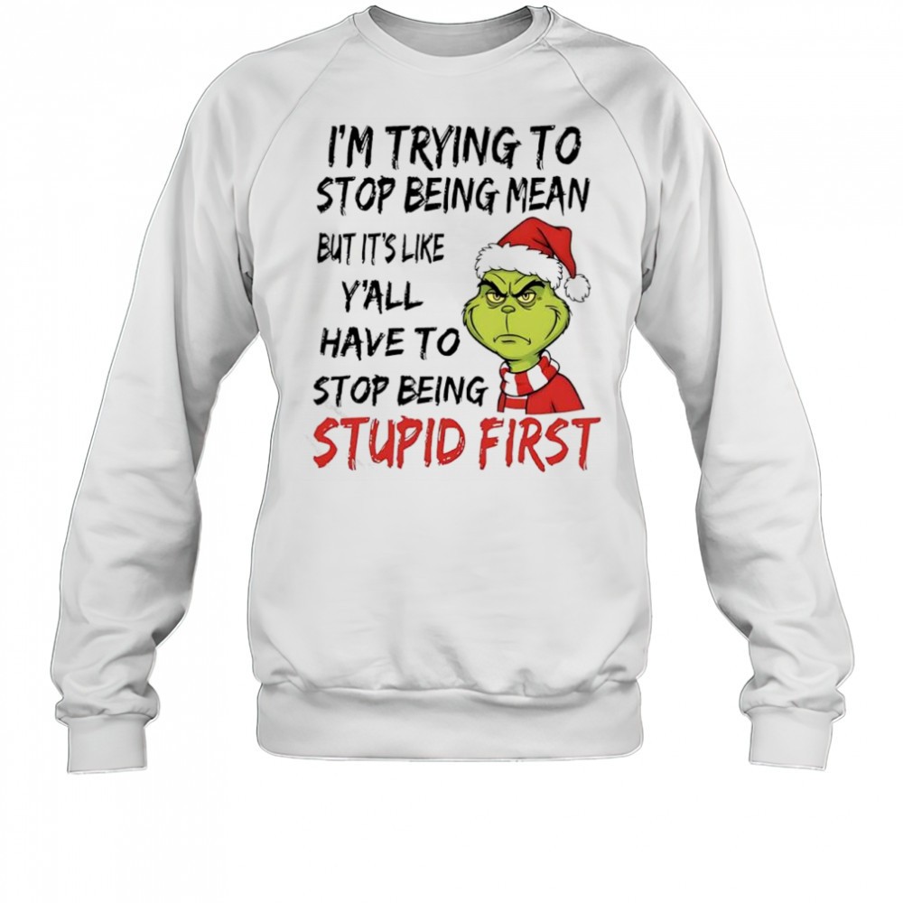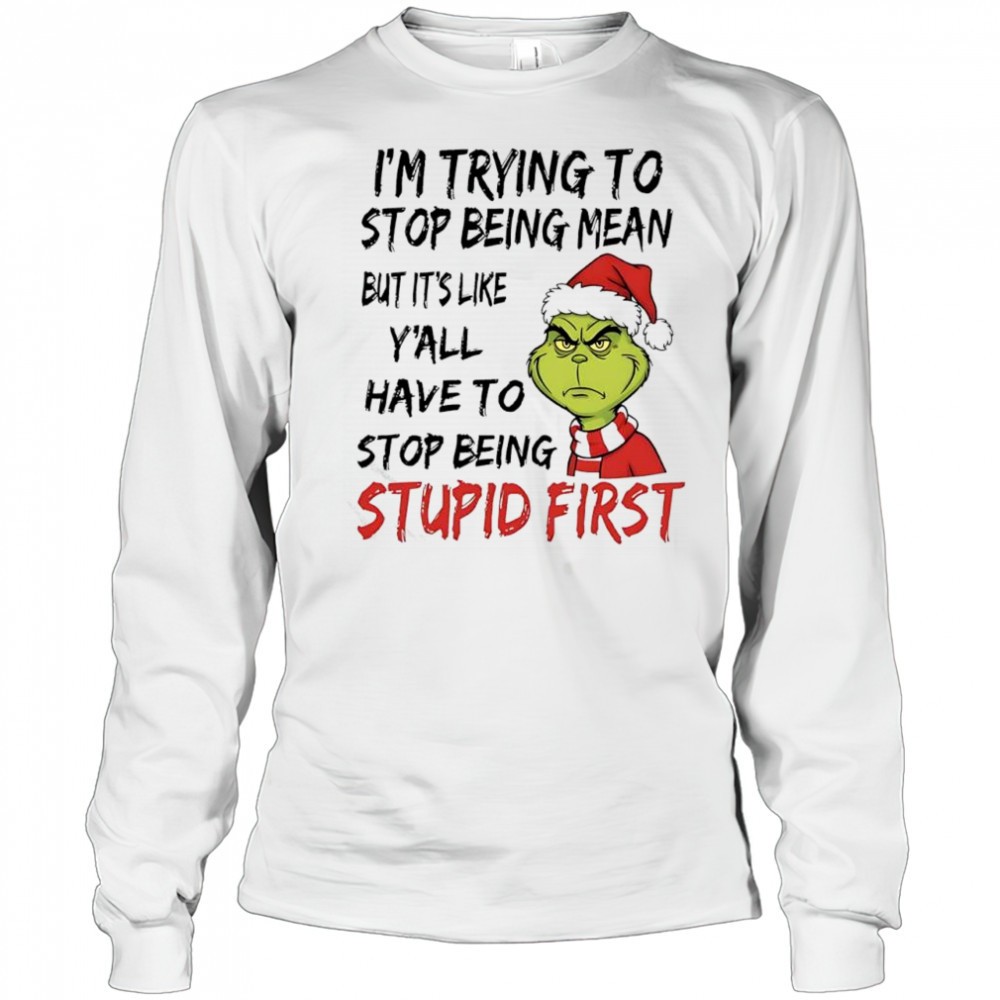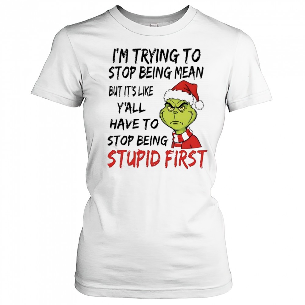 Grinch Santa im trying to stop being mean but its like yall have to stop being stupid first shirt