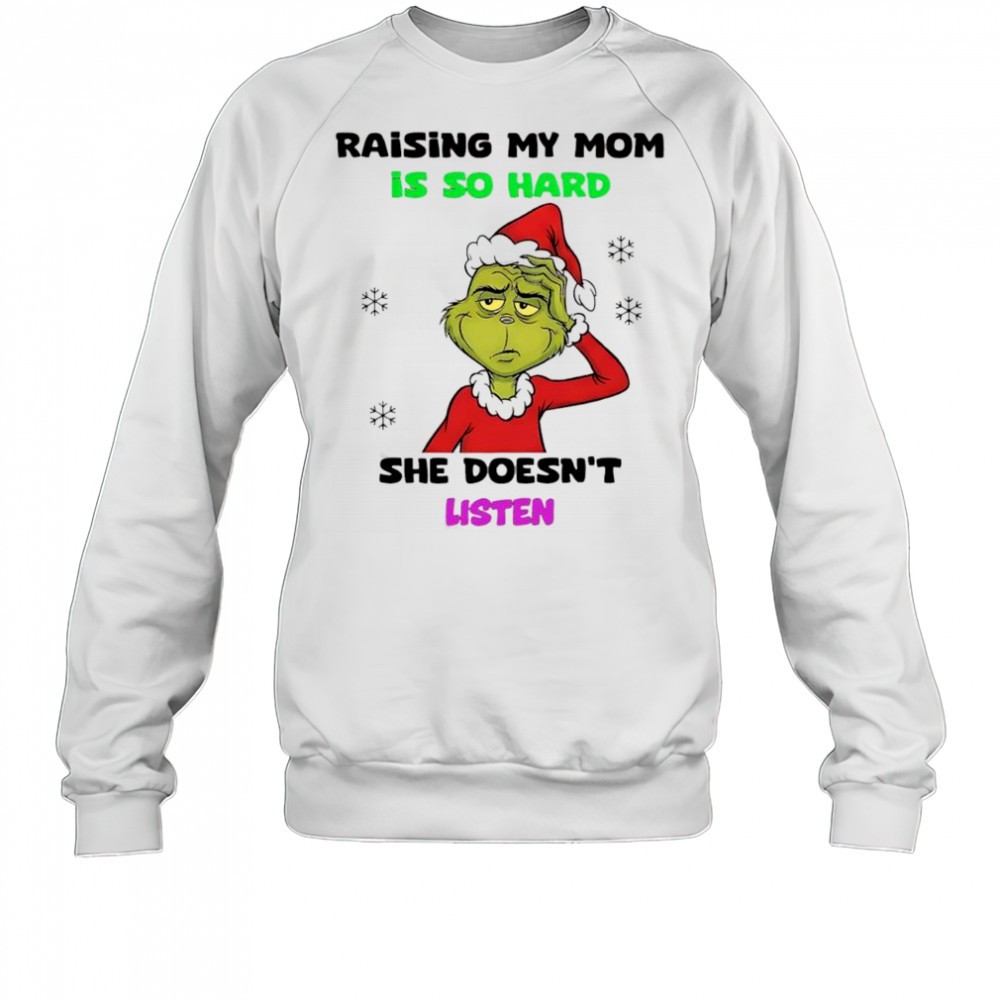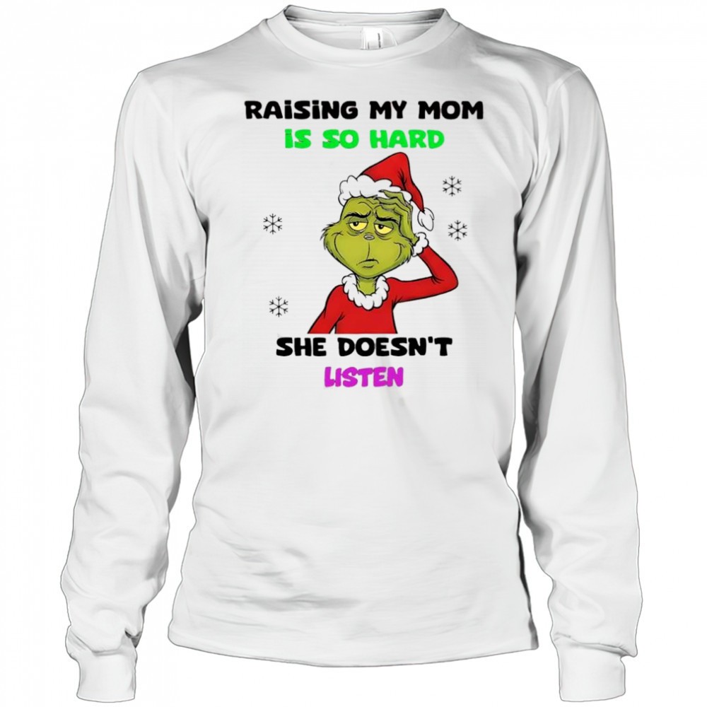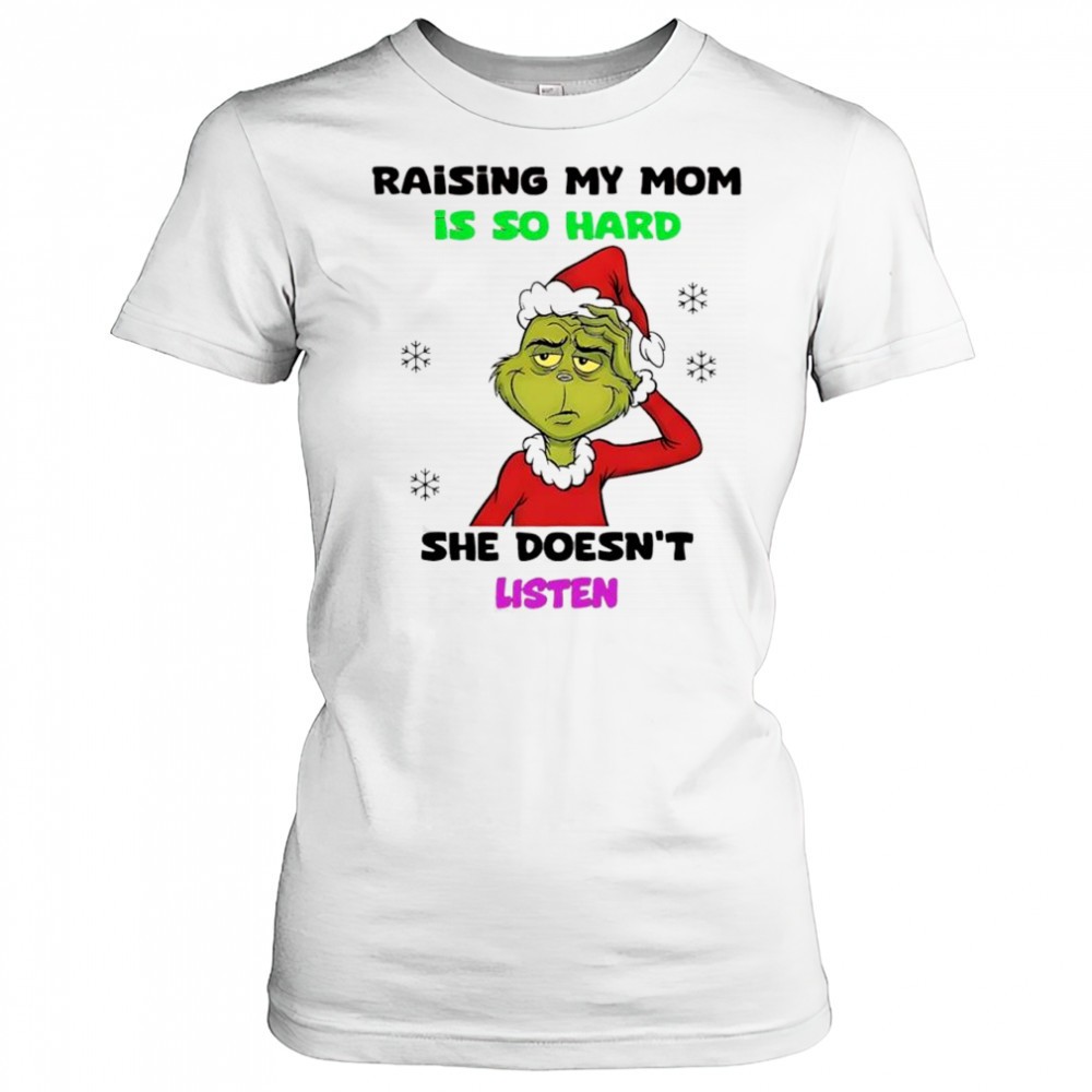 Grinch Santa raising my mom is so hard she doesnt liste shirt