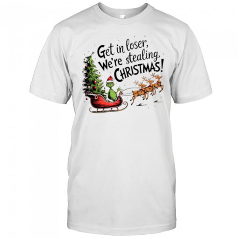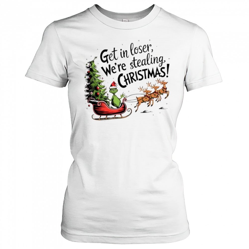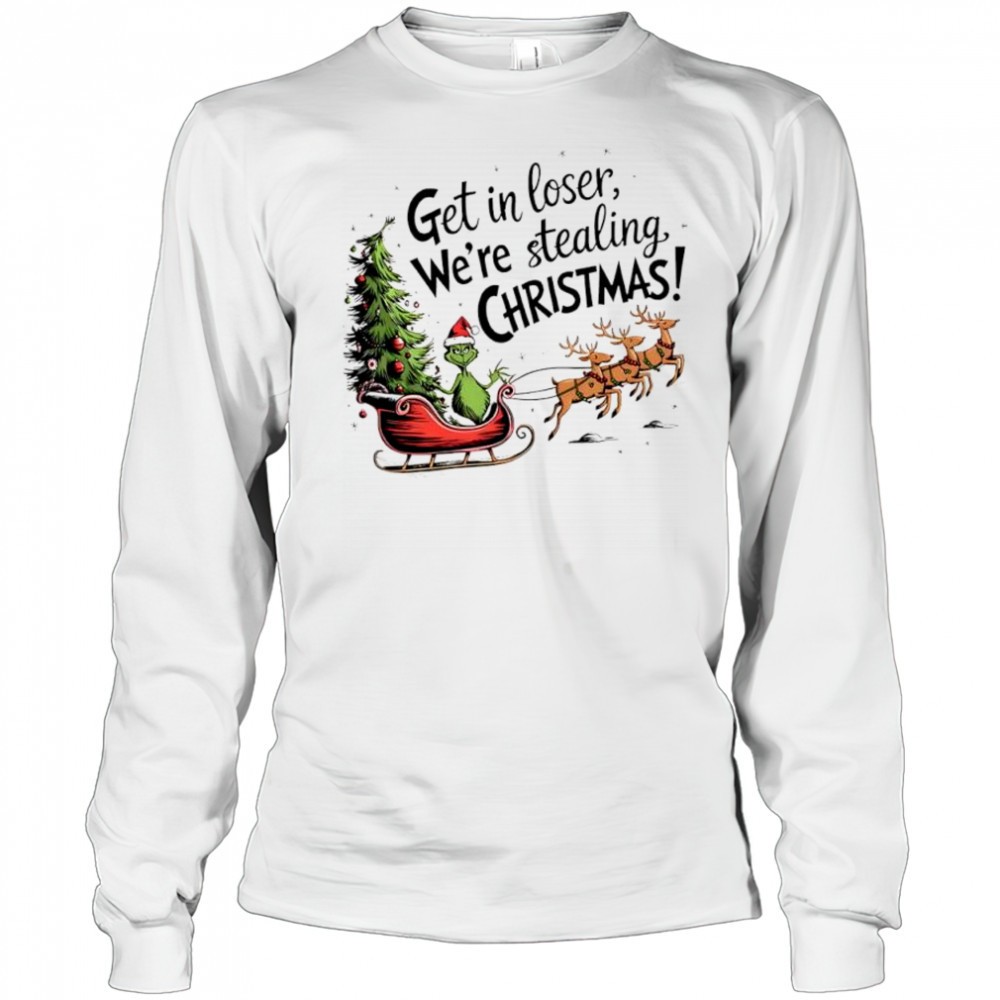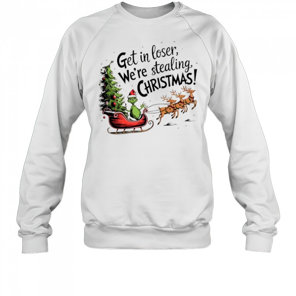 Grinch with reindeer Get in loser Were stealing Christmas shirt
