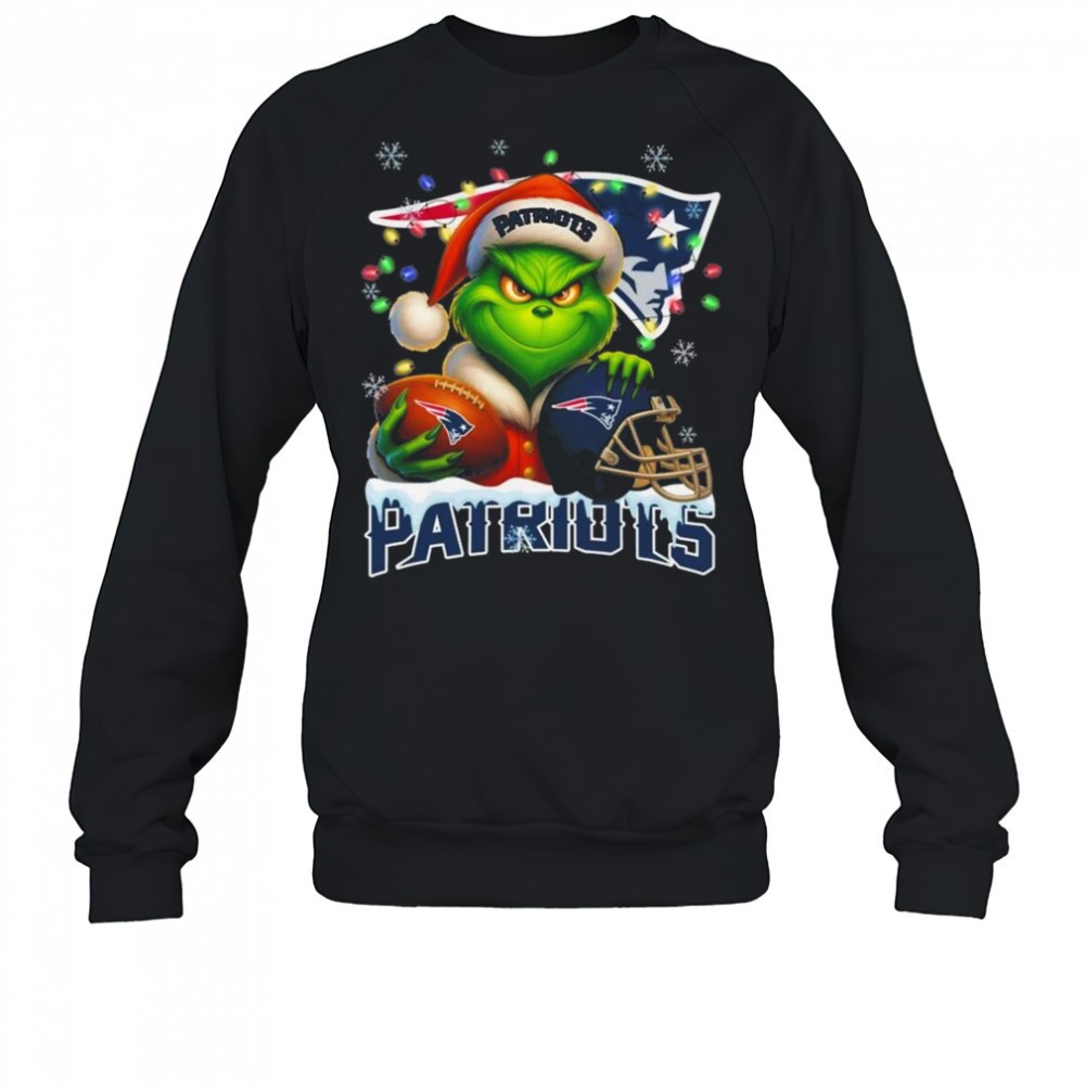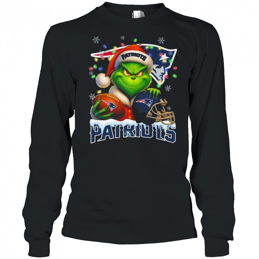 Grinch X New England Patriots Ball And Helmet Merry Christmas Shirt