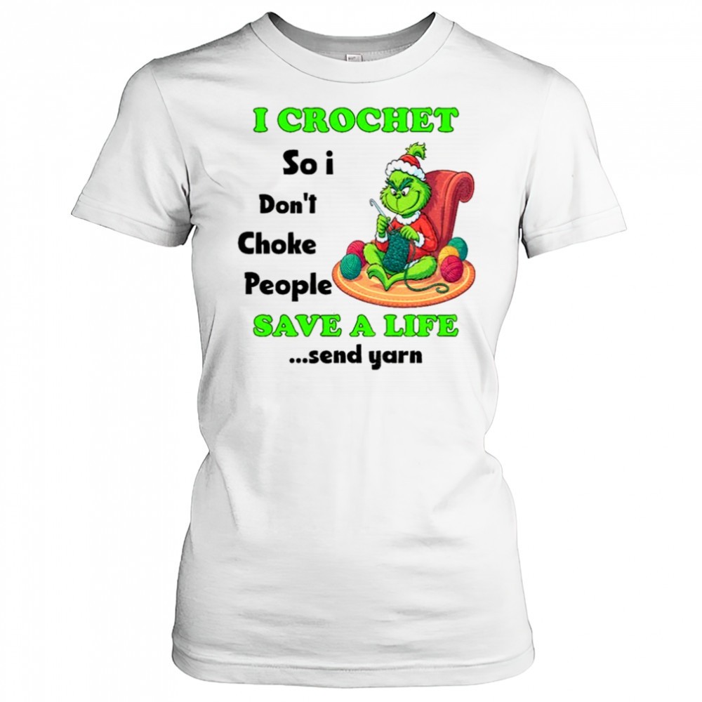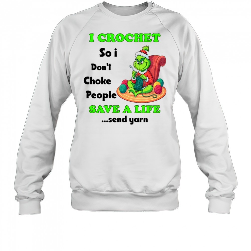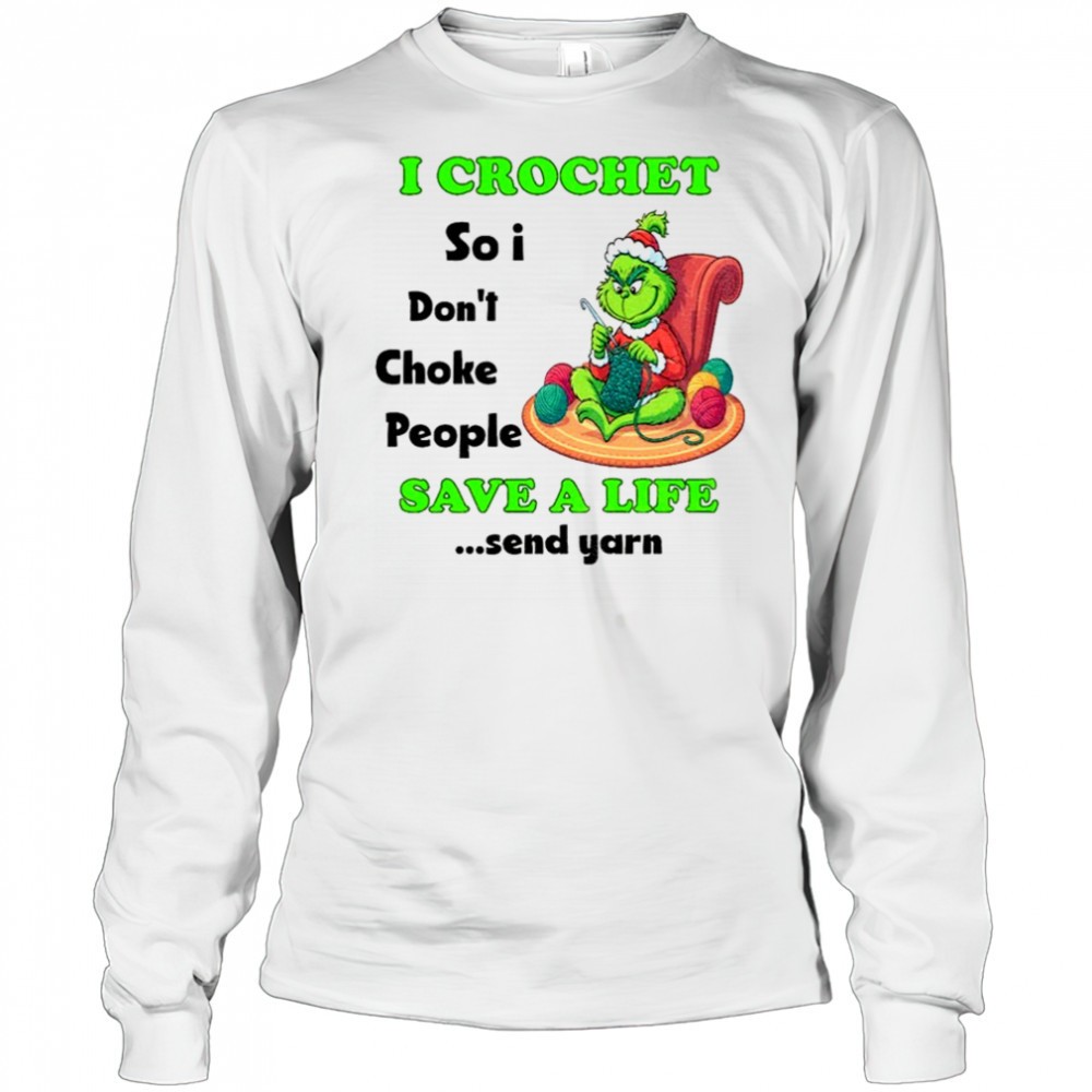 Grinch Xmas I crochet so I dont choke people save a life send yarn Merry Christmas shirt