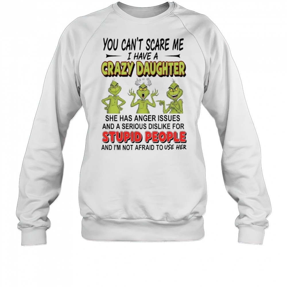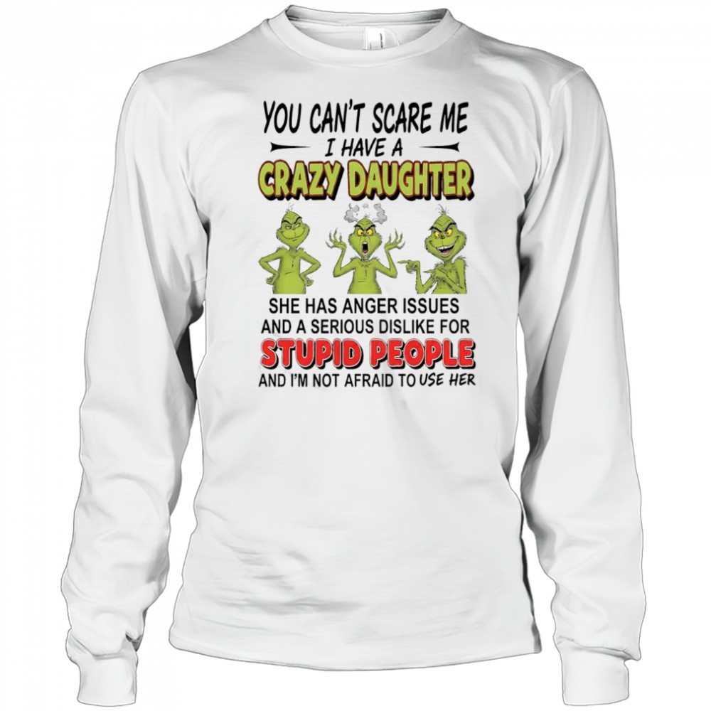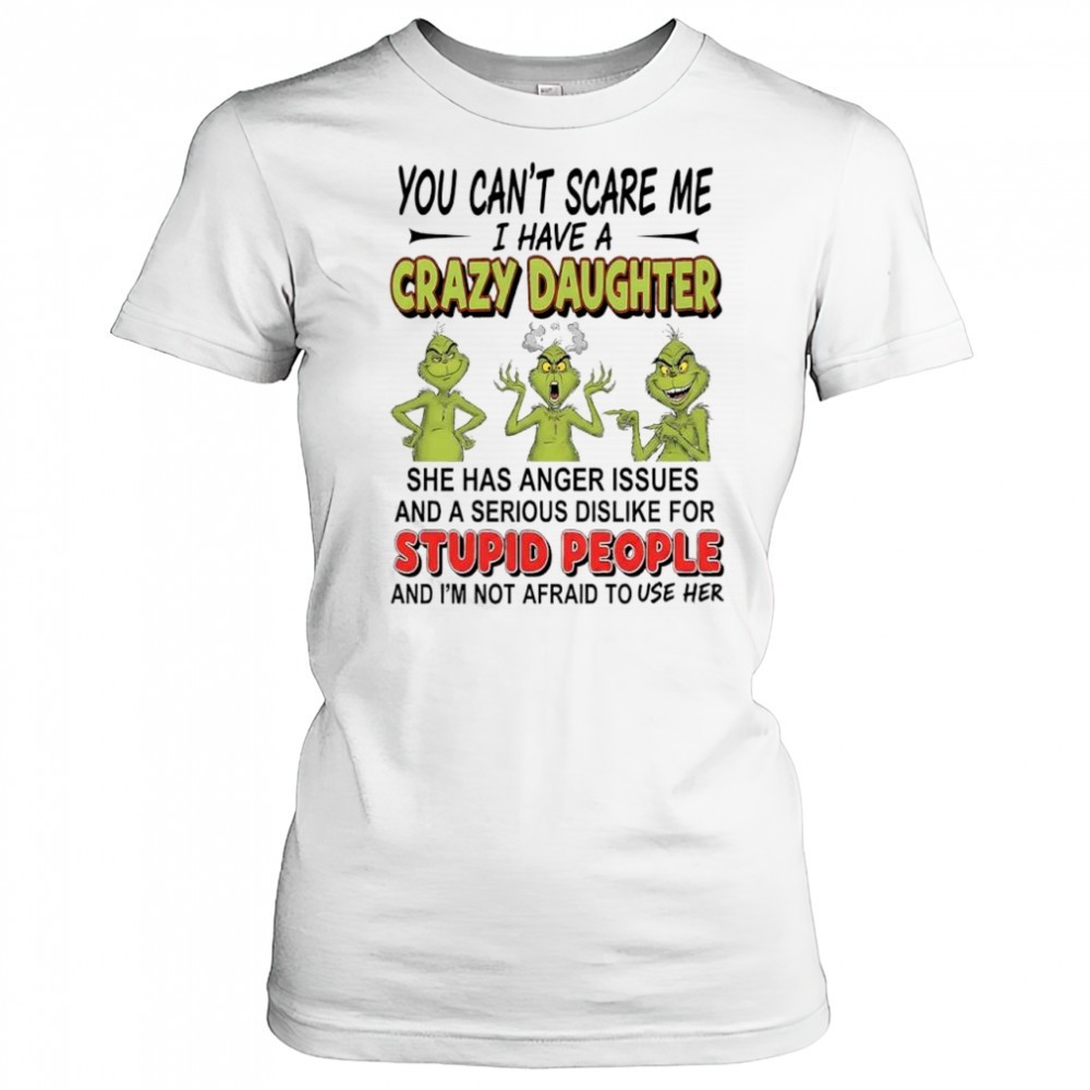 Grinch you cant scare me i have a crazy daughterfor stupid people shirt