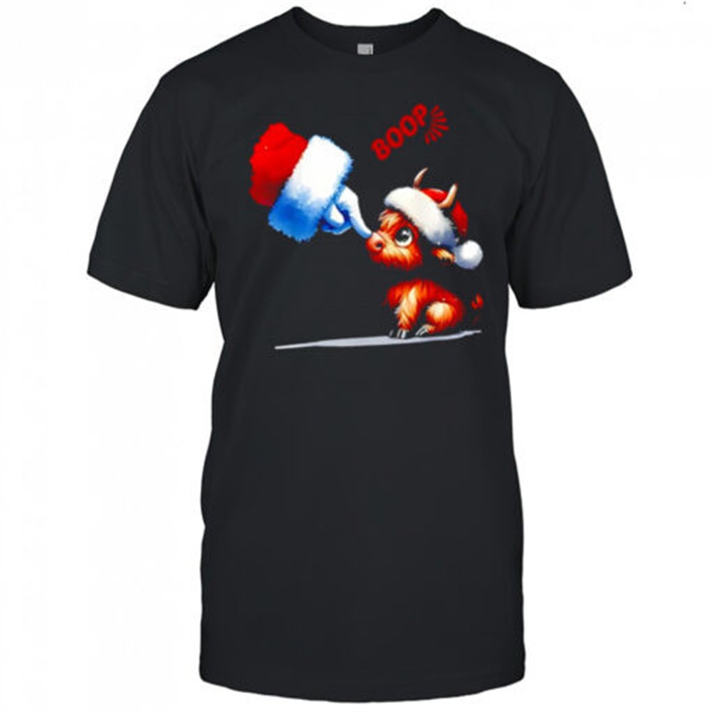 Hand Boop Christmas Highland Cow Santa Farmer Animal Western shirt