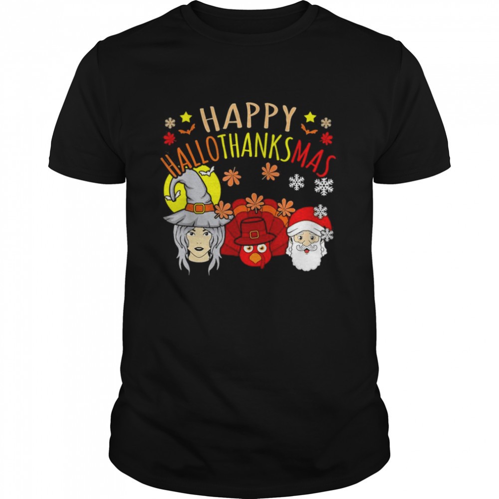 Happy Hallothanksmas Halloween Gnomes Thanksgiving Christmas T-Shirt