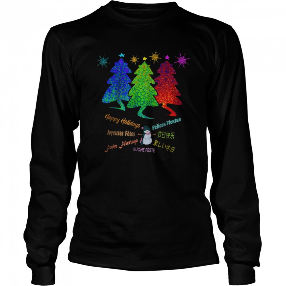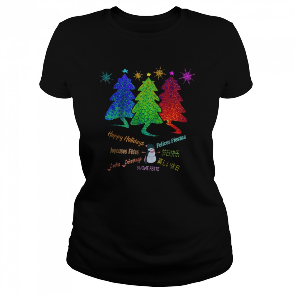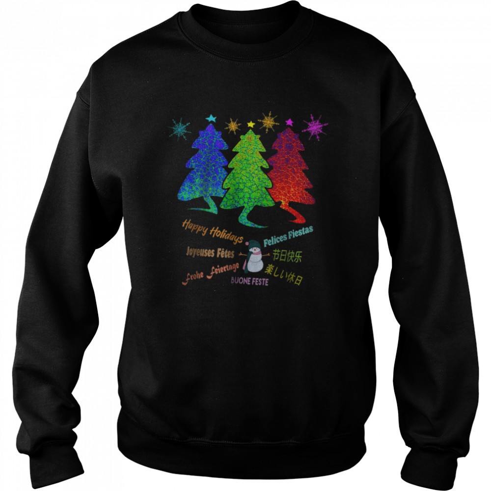 Happy Holidays Christmas Trees Funny Pets Multiple Languages T-Shirt