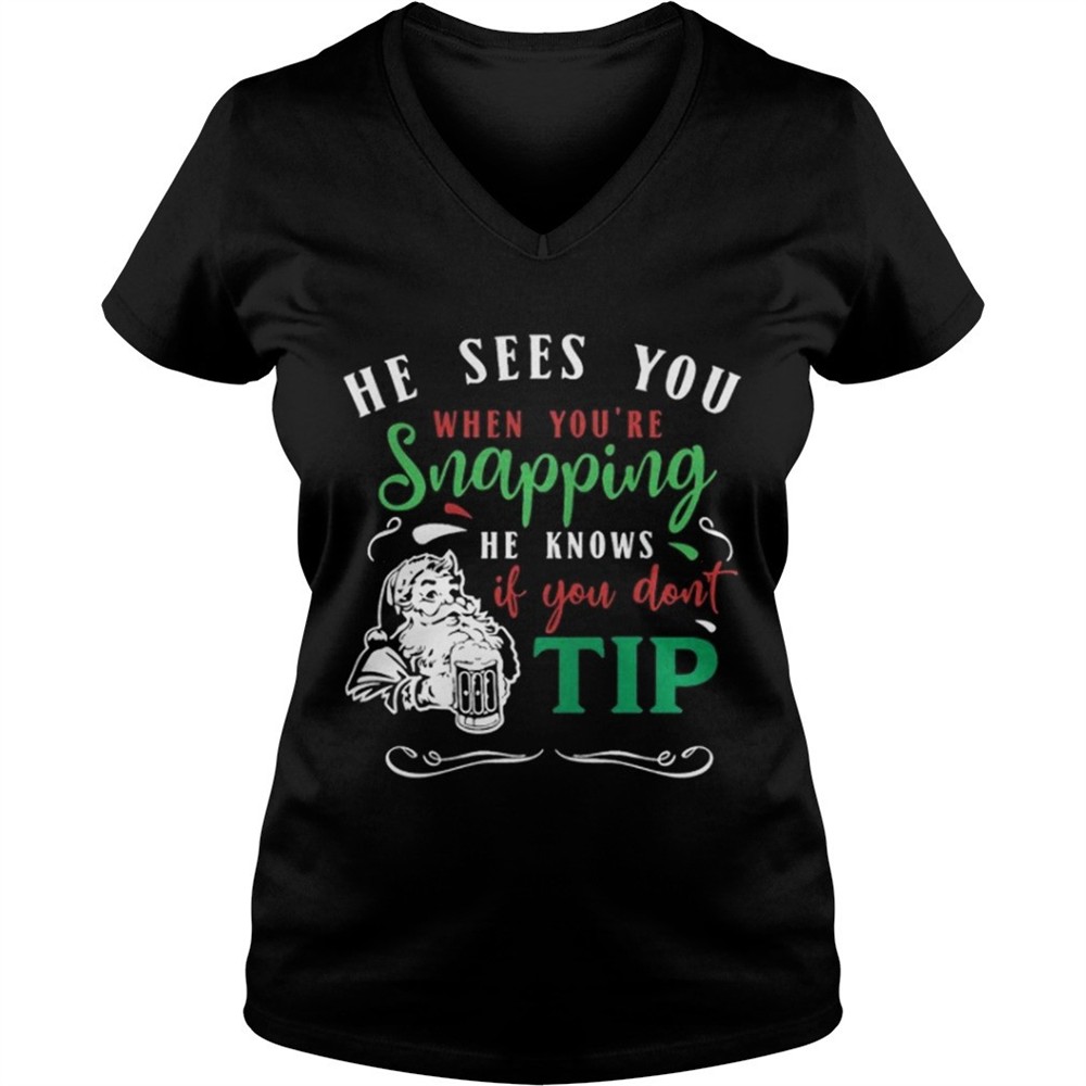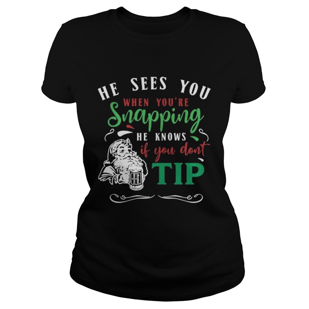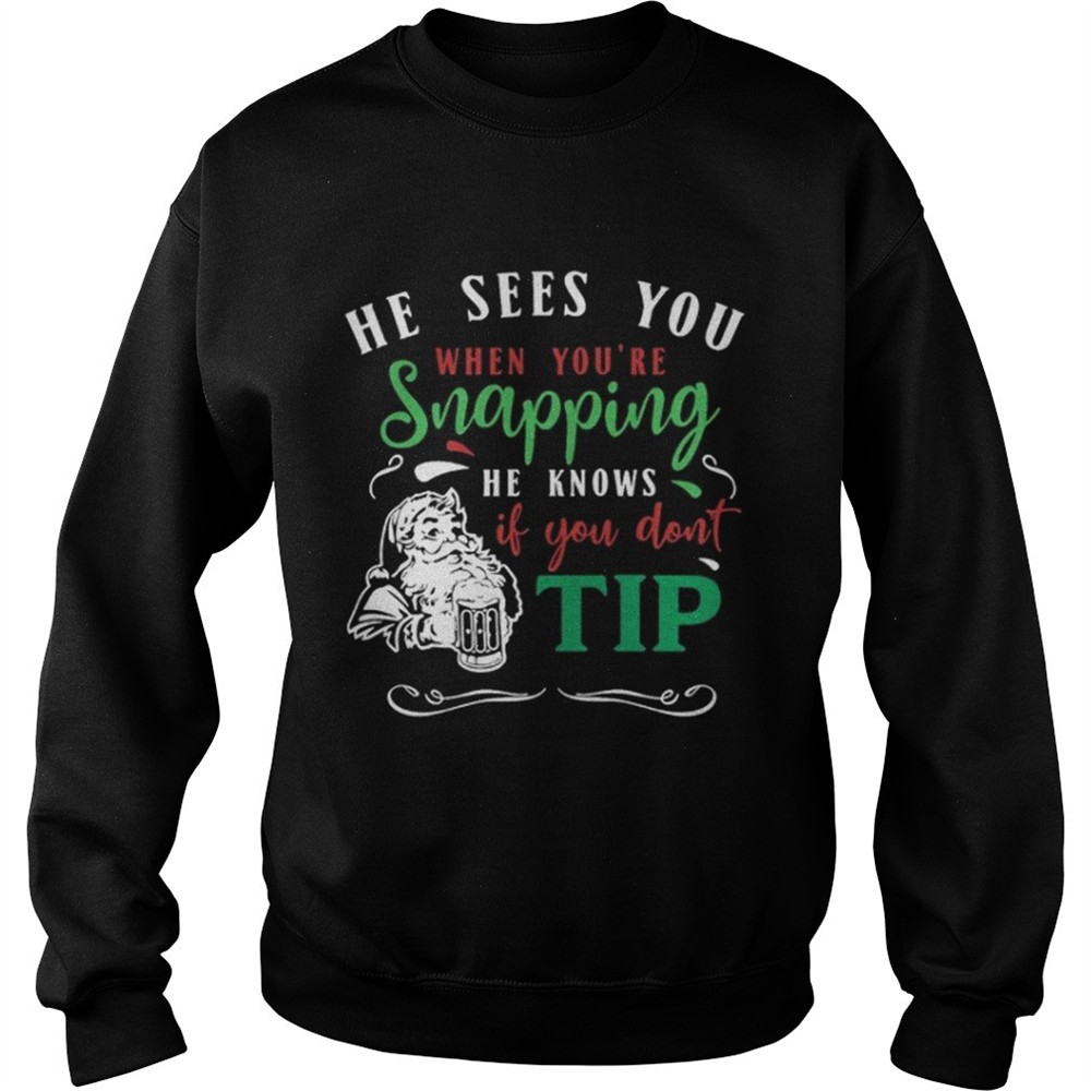 He sees you when youre snapping he knows if you dont tip santa shirt