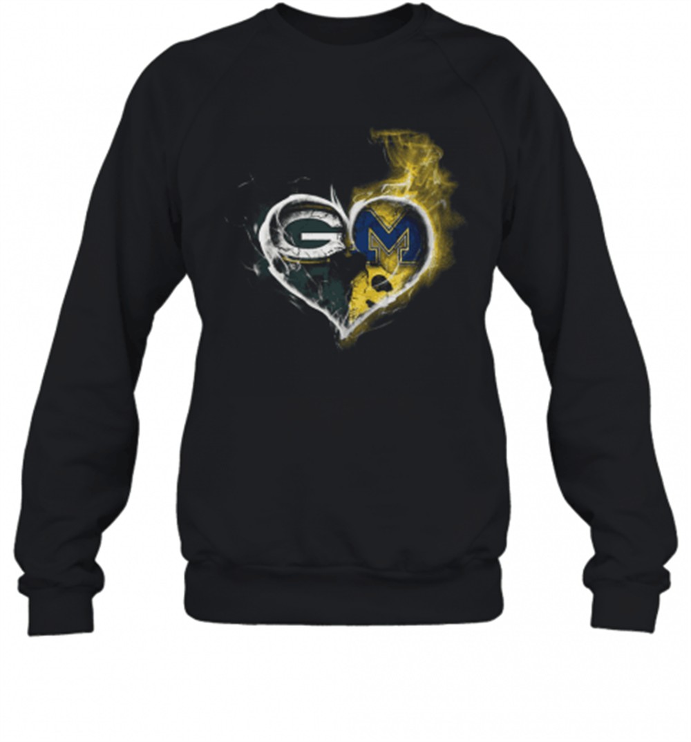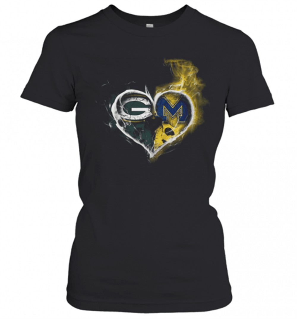 Heart Green Bay Packers And Michigan Wolverines Football T-Shirt